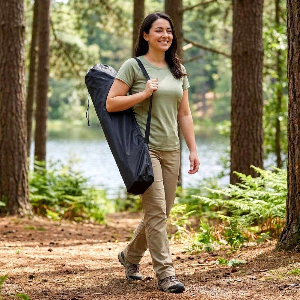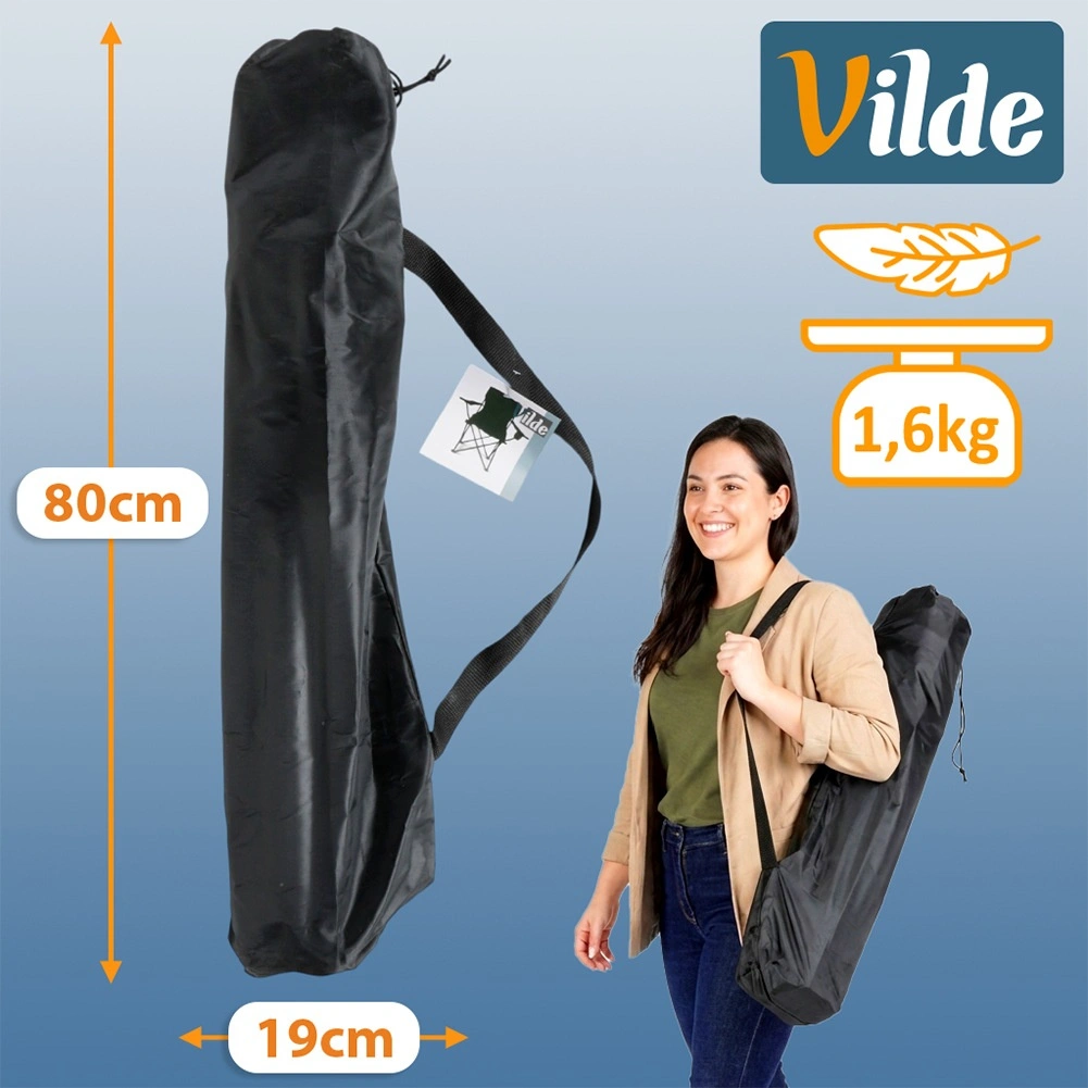Une fois pliée, la chaise affiche des dimensions compactes et se range dans un étui avec sangle d’épaule pour un transport facile. Résistante au soleil, à l’humidité et aux conditions météorologiques changeantes, elle est un excellent choix pour le camping, la pêche, la plage, les festivals et le jardin.