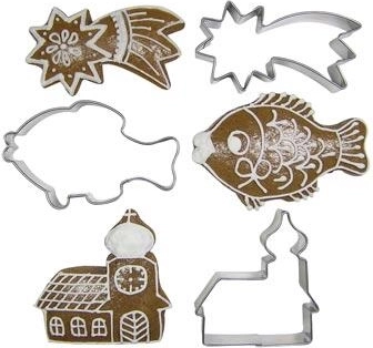 Pratique set d’emporte-pièces en inox pour découper facilement des biscuits aux formes populaires comète, carpe et petite église. L’acier inoxydable résistant garantit une longue durée de vie, des bords nets et un entretien facile. Idéal pour la pâtisserie de Noël et les activités créatives avec les enfants.