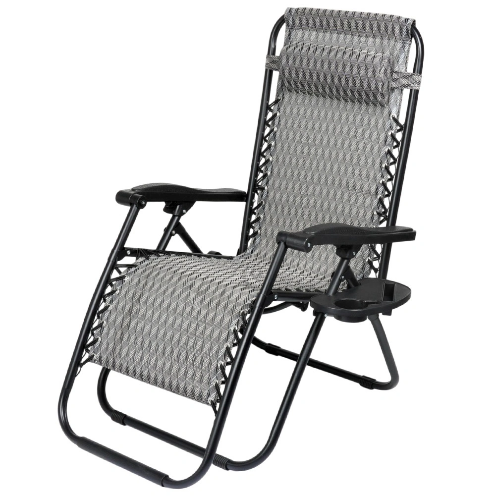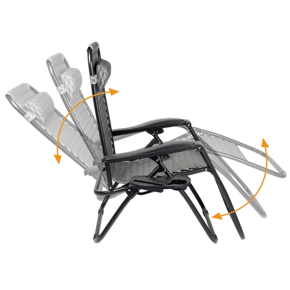 Profitez d’un repos parfait sur une chaise longue gravitationnelle confortable avec réglage fluide de la position. Grâce à sa conception ergonomique, la chaise longue s’adapte à la morphologie, soulage le dos et la colonne vertébrale et offre les positions assise, semi-allongée et allongée. Un cadre métallique résistant, une toile grise respirante à motif, un coussin d’appui-tête amovible et une tablette latérale avec porte-boisson en font un choix idéal pour le jardin, la terrasse, le balcon et le camping.