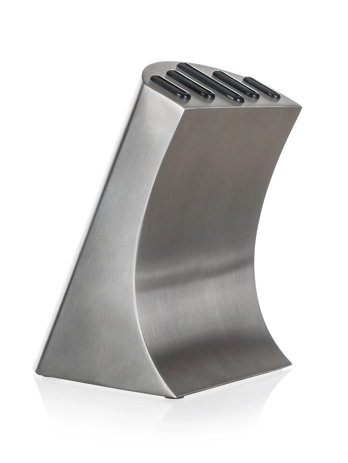 Le bloc métallique élégant avec base antidérapante organise tous les couteaux, protège leurs lames et assure un accès rapide pendant la cuisson.