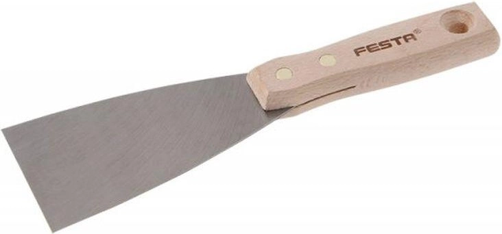 Spatule universelle FESTA avec une largeur de lame de 80 mm, un allié fiable pour un usage domestique comme professionnel. Grâce à sa lame en acier et à son manche en bois confortable, elle est parfaite pour le grattage des murs, la réparation des fissures et des trous ainsi que pour d’autres travaux de finition.