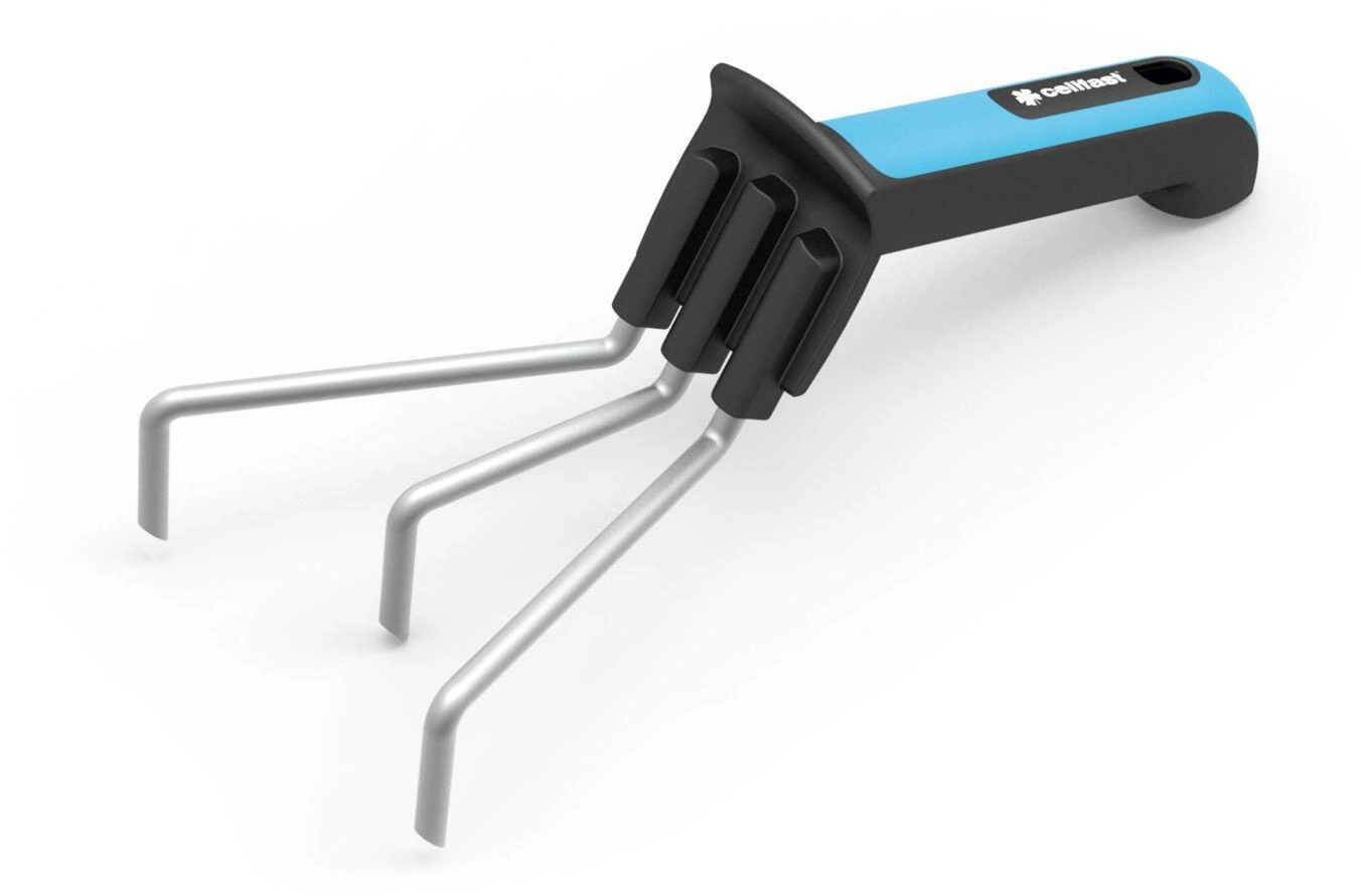 Trois dents métalliques robustes aux bords lisses ameublissent et aèrent efficacement le sol tout en évitant d’endommager les racines des plantes voisines.