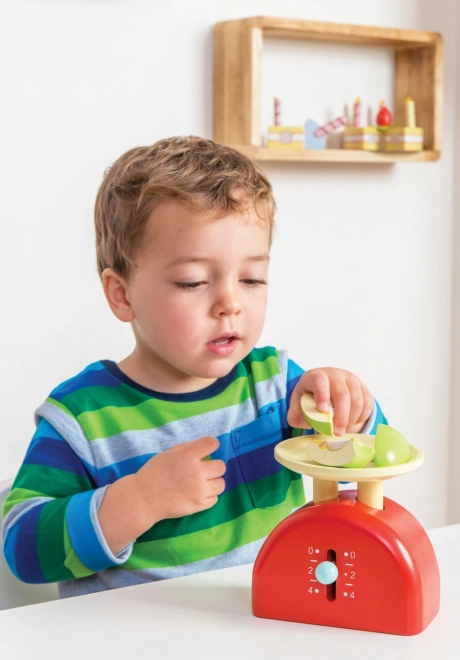 Une balance de cuisine en bois élégante de la collection Honeybake par LE TOY VAN est l’accessoire idéal pour une cuisine ou une boutique pour enfants. Elle offre une pesée réaliste grâce à une astucieuse manette mobile, est finie à la main avec des peintures à l’eau non toxiques et comprend deux moitiés de pommes avec velcro pour d’infinis scénarios de jeu.