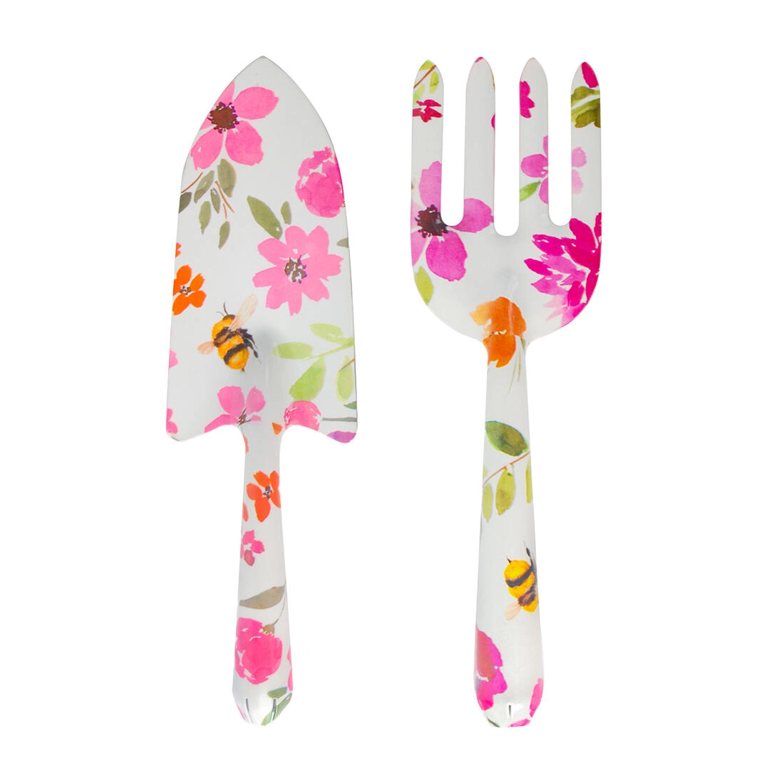 Set de jardinage 2 pièces avec décor floral, en fer