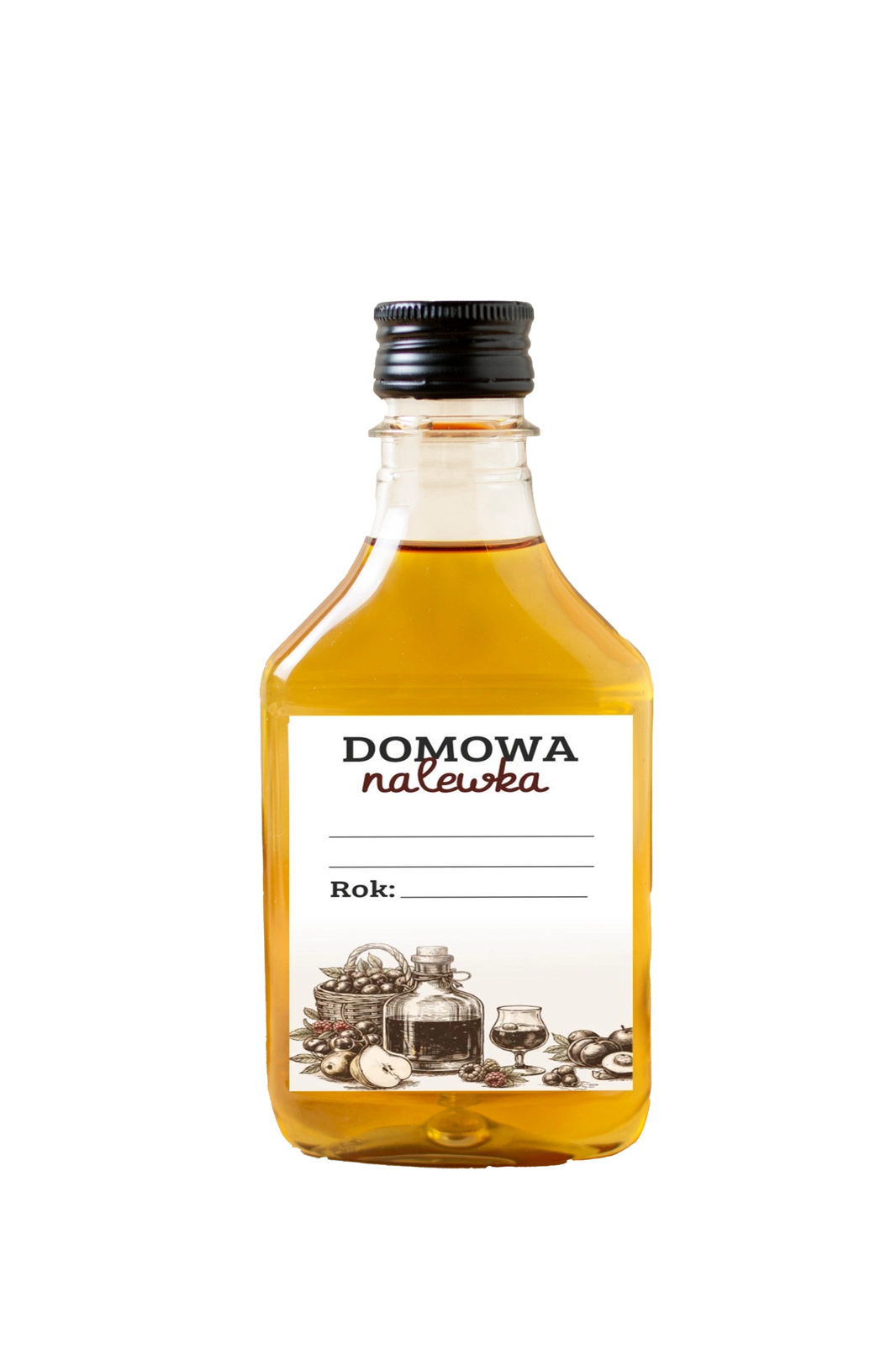 Le design universel « Domowa Nalewka » convient à une large palette de boissons maison – des liqueurs fruitées aux macérats aux herbes. L’étiquette offre beaucoup d’espace pour le nom de la liqueur, la date de production ou d’autres informations, afin que vos bouteilles soient clairement et élégamment identifiées.
