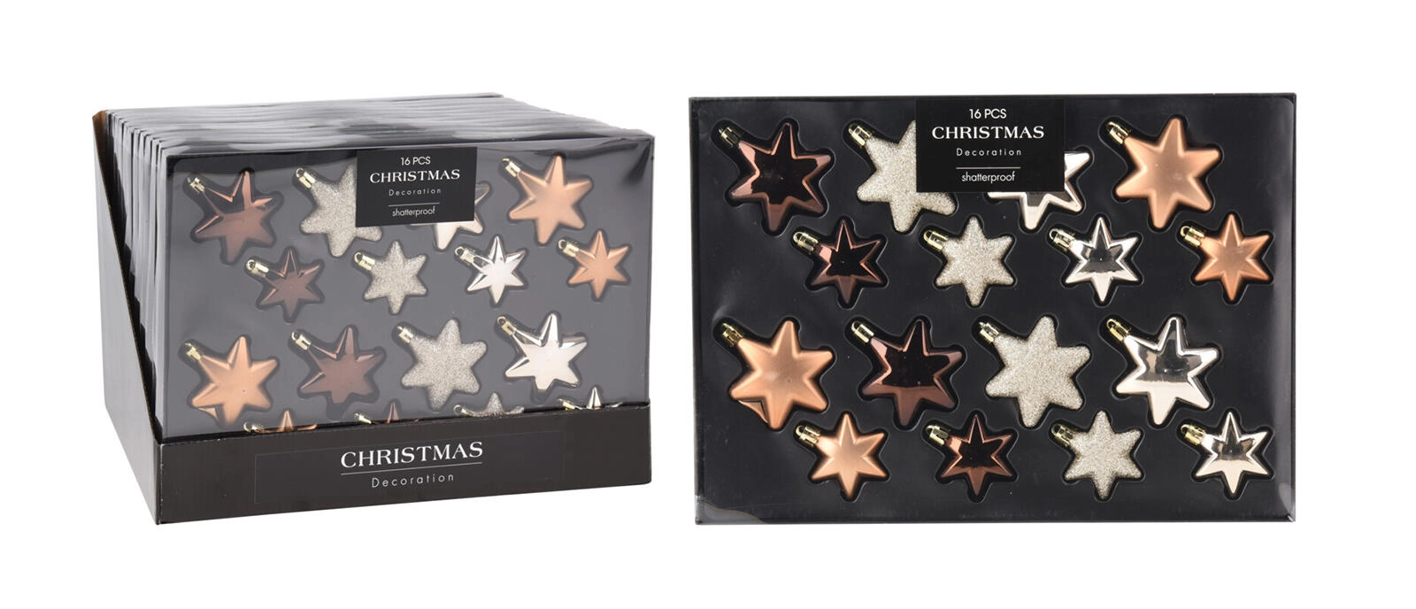 Créez chez vous une atmosphère de fête magique avec des étoiles suspendues classiques dans des tons bruns et dorés. Le set comprend 16 pièces dans un mélange pratique de nuances et deux tailles pour une décoration variée et équilibrée du sapin, des couronnes et des compositions de fête.