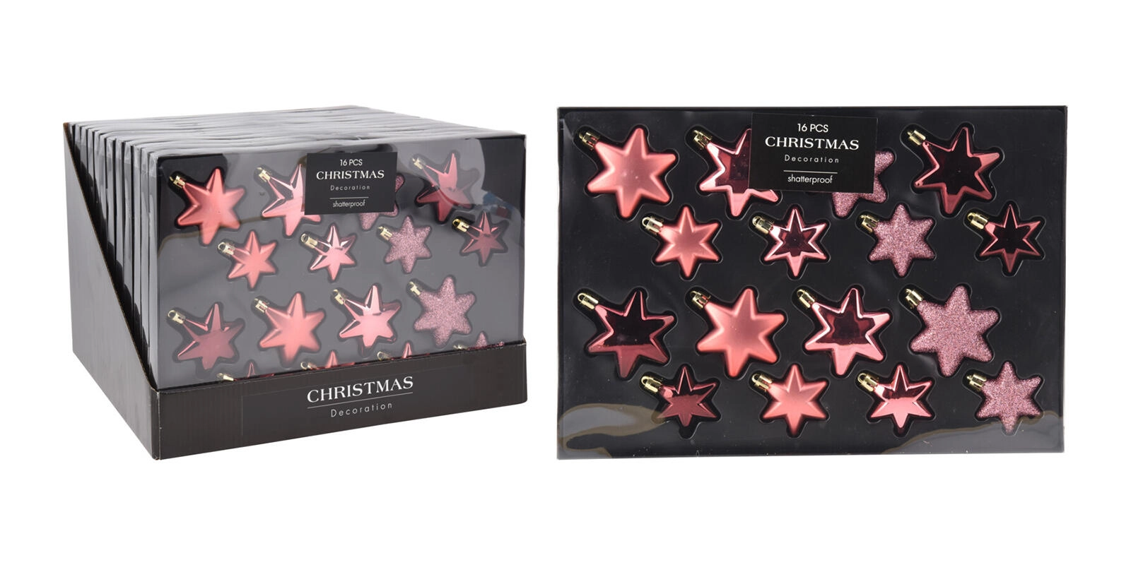 Un ensemble élégant de décorations de Noël en forme d’étoile dans des tons de rose apporte un léger éclat et une atmosphère féérique à l’arbre et à l’intérieur. Le coffret propose un mélange de nuances et de tailles pour une décoration stylée et harmonieuse, idéale pour le sapin de Noël, les couronnes et autres décorations dans toute la maison.