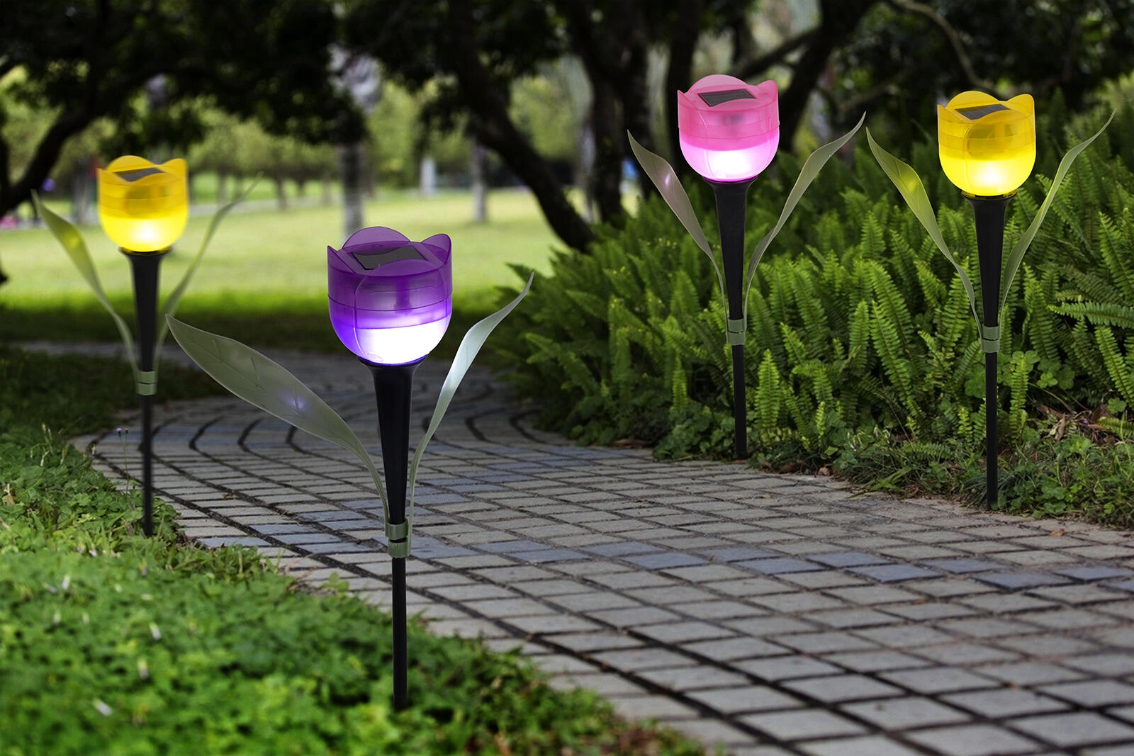 Lampe de jardin solaire tulipe à LED, assortiment de couleurs