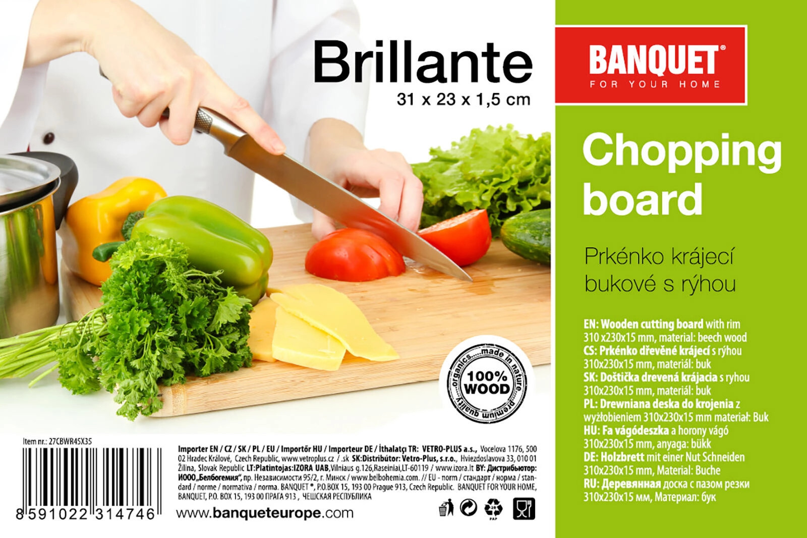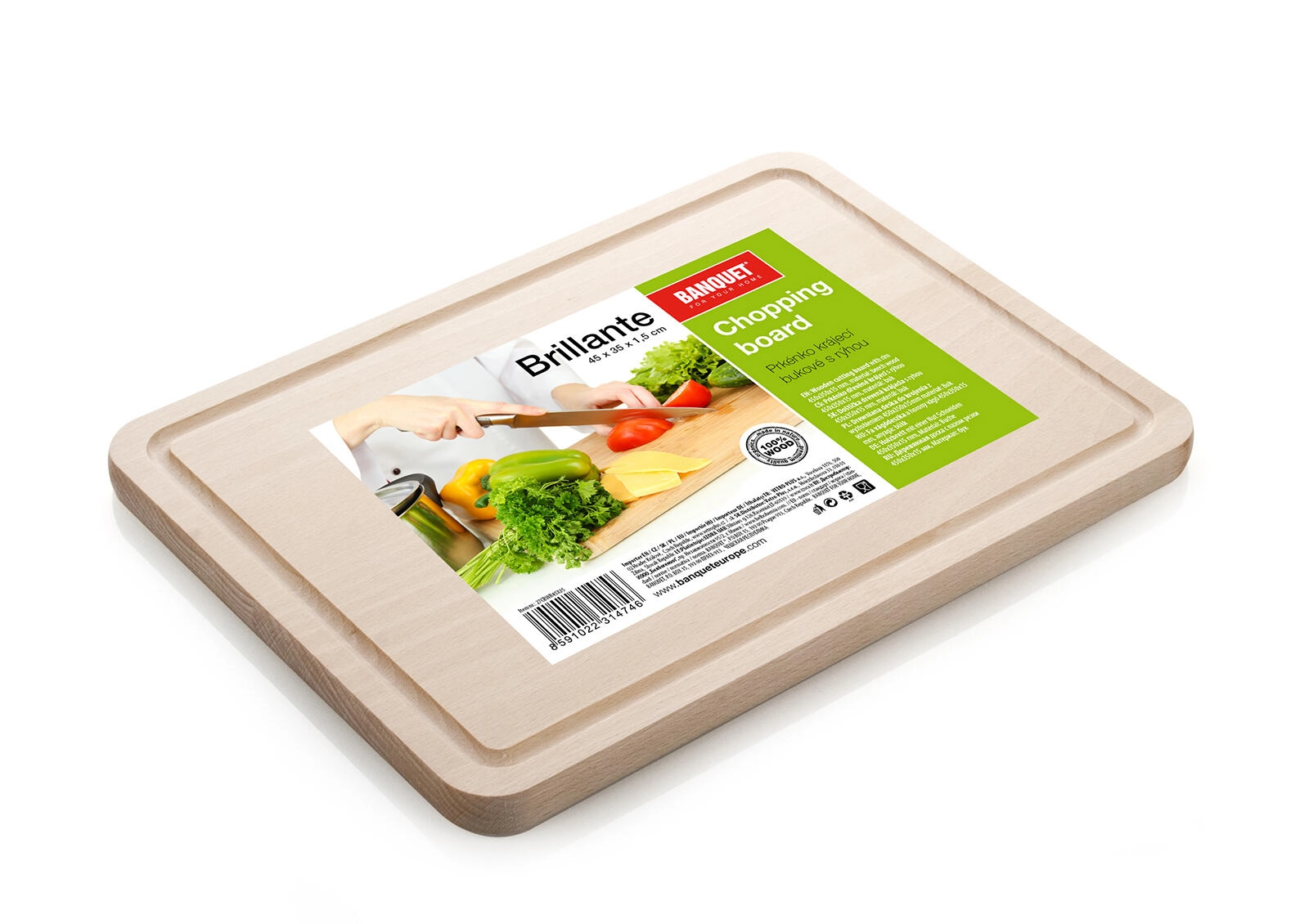 Découvrez la planche à découper BRILLANTE en hêtre, qui grâce à sa rainure sur le pourtour recueille les jus de viande, de fruits et de légumes, gardant ainsi le plan de travail propre. Le hêtre naturel confère à la planche robustesse, longévité et une allure élégante adaptée à toute cuisine.