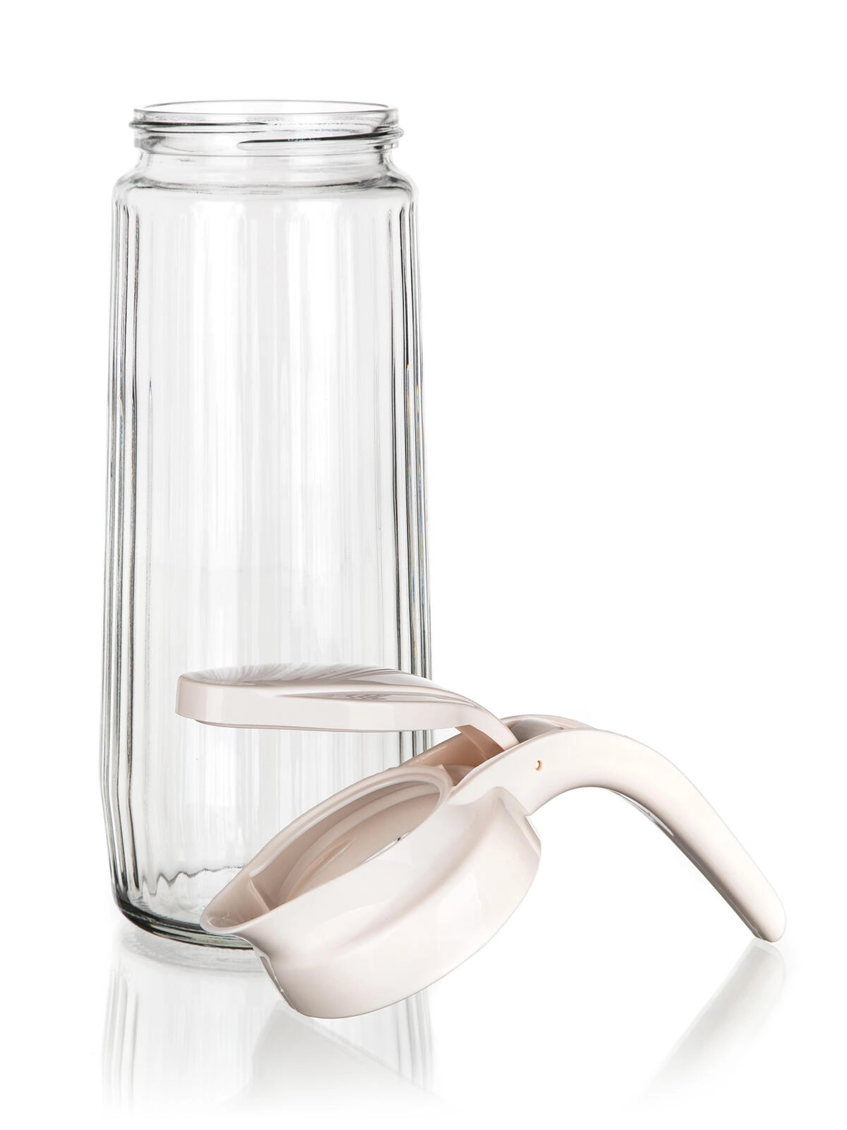 La carafe en verre Stripe 1,5 l est idéale pour l’eau, les citronnades, le thé glacé et les jus maison. Le corps rainuré (ribbed) apporte une touche moderne tout en assurant une meilleure prise en main. Le couvercle pratique en plastique avec bec rabattable facilite un versement précis et protège la boisson des impuretés.