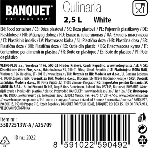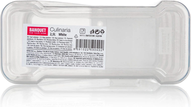 Cette boîte pratique en plastique de 2,5 litres est conçue pour un stockage clair et hygiénique des aliments secs. Grâce à son design transparent, vous voyez toujours la quantité disponible et, avec le couvercle doseur à ouverture, vous versez exactement la quantité nécessaire – sans désordre.