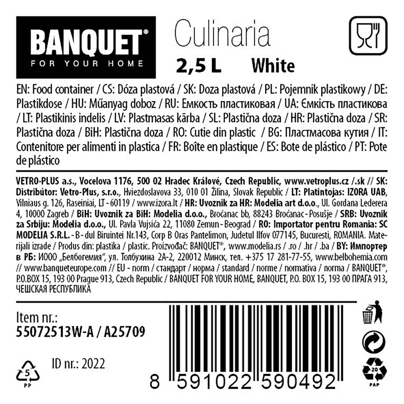 Boîte pour aliments secs 2,5 l avec couvercle doseur, transparent/blanc