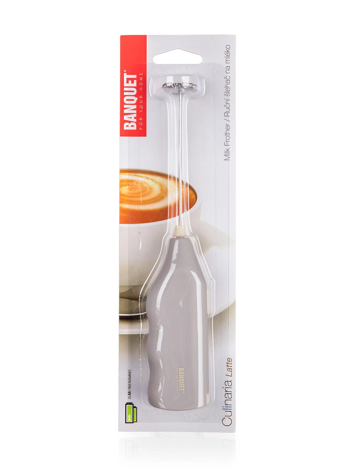 Le mousseur à lait manuel Culinaria Latte crée rapidement une mousse onctueuse pour cappuccino, latte et chocolat chaud. Il possède une poignée ergonomique en plastique résistant et un fouet en inox 18/8 pour une longue durée de vie. L’alimentation est assurée par 2× piles AA (non incluses).