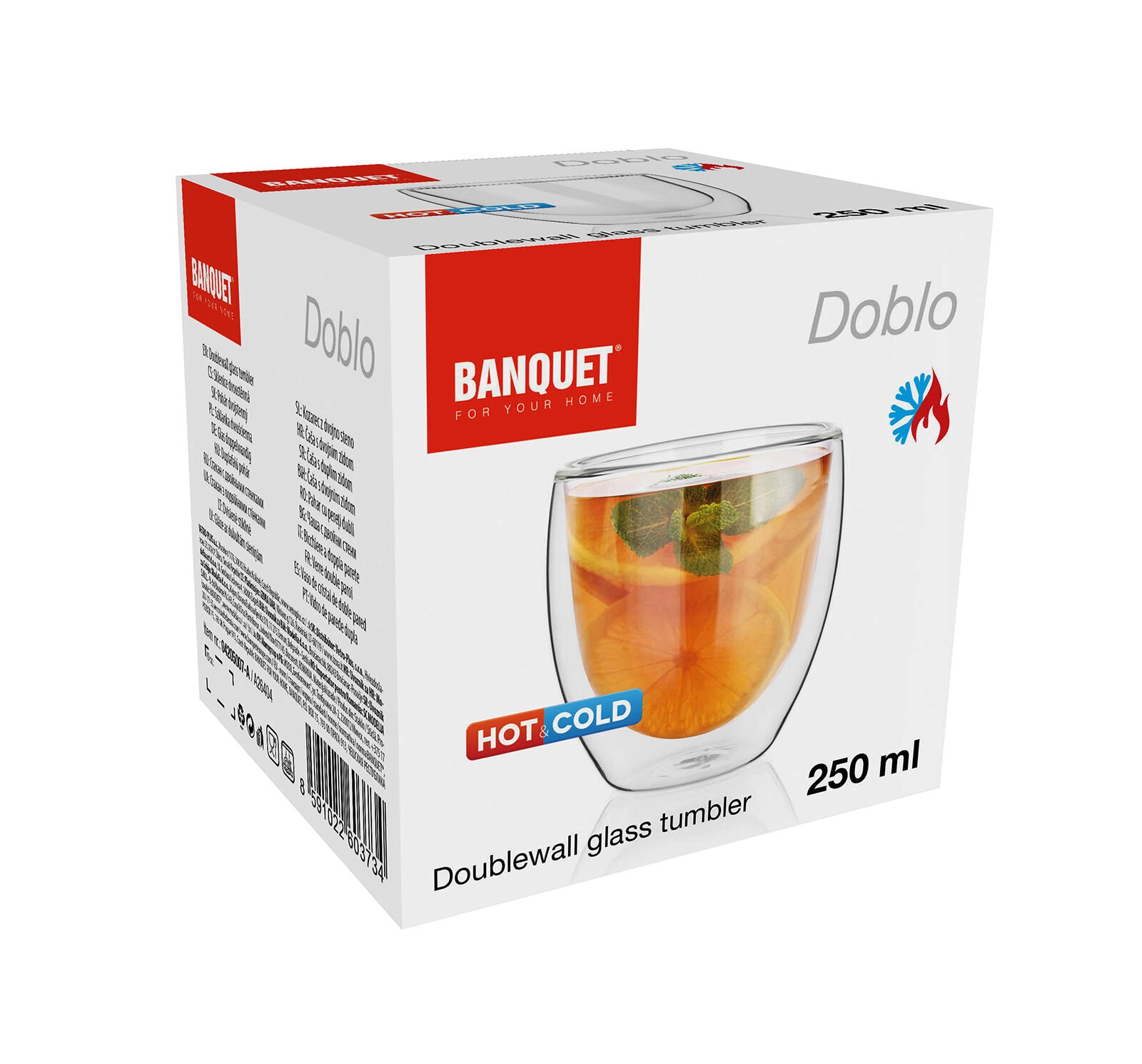 Le verre élégant à double paroi DOBLO de 250 ml maintient vos boissons plus longtemps à la température idéale. Grâce à l’isolation à deux parois, les boissons chaudes restent chaudes plus longtemps et les boissons froides restent rafraîchissantes, tandis que la paroi extérieure chauffe moins et condense moins. Le verre est compatible lave-vaisselle et complète à merveille une table moderne.