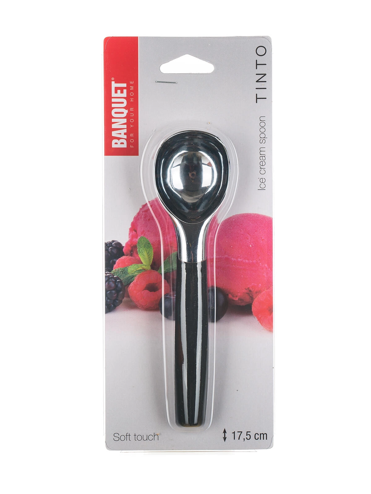 Cette cuillère à glace Tinto est conçue pour un service confortable et efficace des glaces et desserts glacés. La tête métallique robuste en alliage de zinc avec surface chromée pénètre facilement même dans les glaces plus dures et façonne de jolies boules régulières. La poignée ergonomique souple avec revêtement antidérapant assure une prise sûre même sous une pression plus élevée.