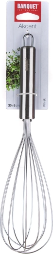 Le fouet pratique AKCENT de 30 cm en acier inoxydable de haute qualité est idéal pour la cuisine quotidienne comme pour un usage professionnel. Il offre une conception durable en inox, une prise en main confortable et un entretien facile. Grâce à son œillet de suspension, vous l’aurez toujours à portée de main et le lave-vaisselle permet un nettoyage rapide.