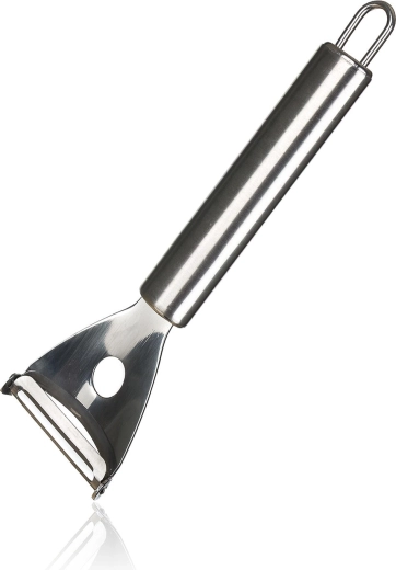 Pratique, l’éplucheur de cuisine type Y AKCENT avec lame transversale en acier inoxydable s’occupe facilement du nettoyage des carottes, concombres, raifort et des fruits. Il offre une lame affûtée de 5 cm, une construction en inox résistante, une utilisation confortable et la possibilité de lavage au lave-vaisselle. Grâce à son œillet de suspension, vous l’aurez toujours à portée de main.