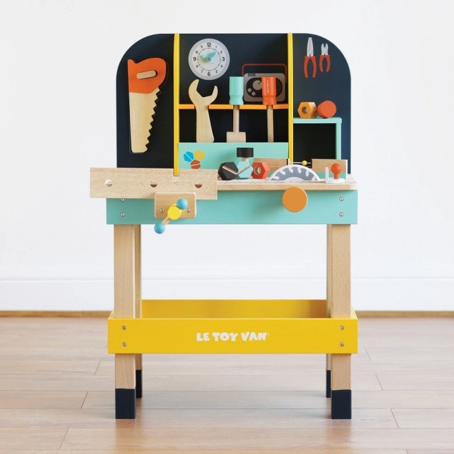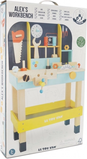 L’établi en bois pour enfants ALEX de LE TOY VAN offre tout ce dont les petits réparateurs ont besoin pour un jeu réaliste. Grâce à sa fabrication solide en bois certifié FSC et à des peintures non toxiques, il est sûr, durable et respectueux de la nature. Il inclut une scie circulaire, un réglet et un étau intégrés, une étagère supérieure avec crochets et un espace de rangement inférieur pour les outils supplémentaires.