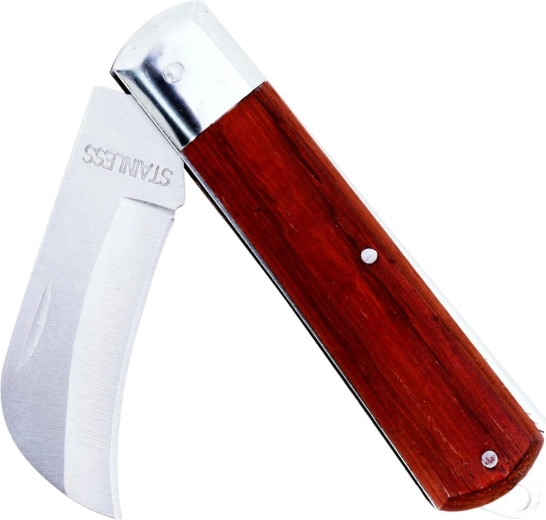 Couteau de greffage de jardin pratique et résistant de 195 mm pour des coupes précises lors du greffage comme des travaux courants. Il offre une poignée ergonomique avec plaquettes en bois, une lame robuste avec étui et un usage polyvalent au jardin, à l’atelier, en camping ou à la cueillette de champignons.