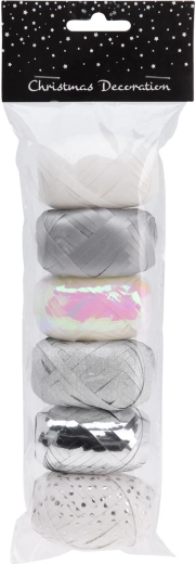 Élégant ruban à nouer de 8 m en combinaison de couleurs blanche et argentée, offrant une apparence luxueuse à vos cadeaux et décorations. Idéal pour l’emballage de cadeaux, la création de nœuds et les décorations créatives, en lot de 6 pièces avantageux pour un usage domestique comme professionnel.