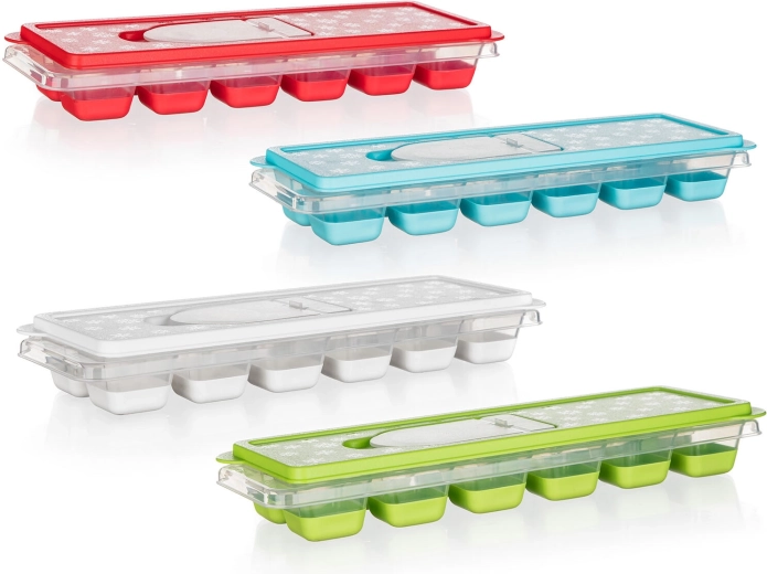 Le couvercle hermétique protège la glace des odeurs du congélateur et permet d’empiler plusieurs bacs en toute sécurité.