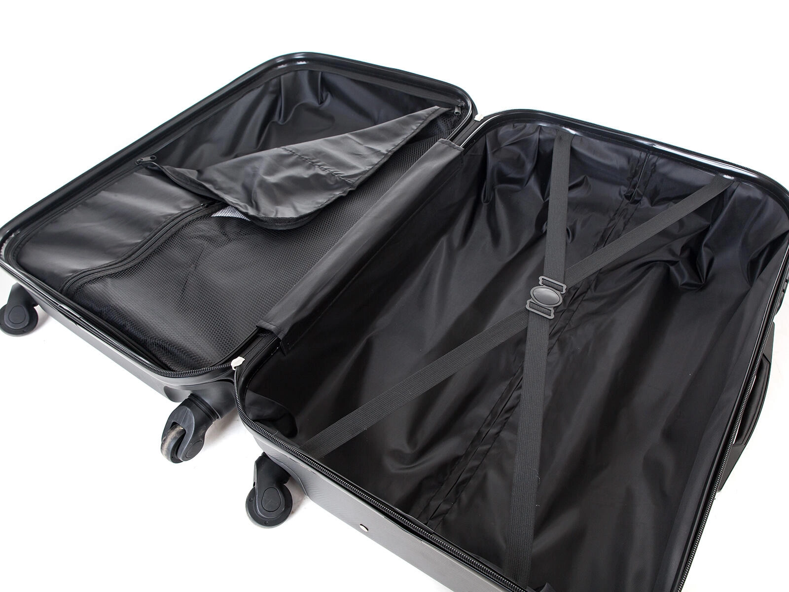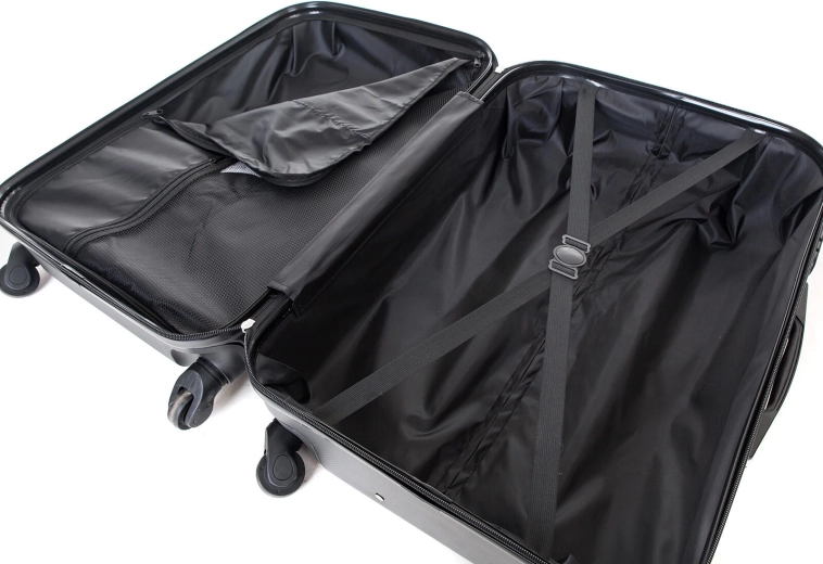 Une cloison textile avec poche et des sangles croisées maintiennent le contenu en place et aident à garder l’ordre pendant le voyage.