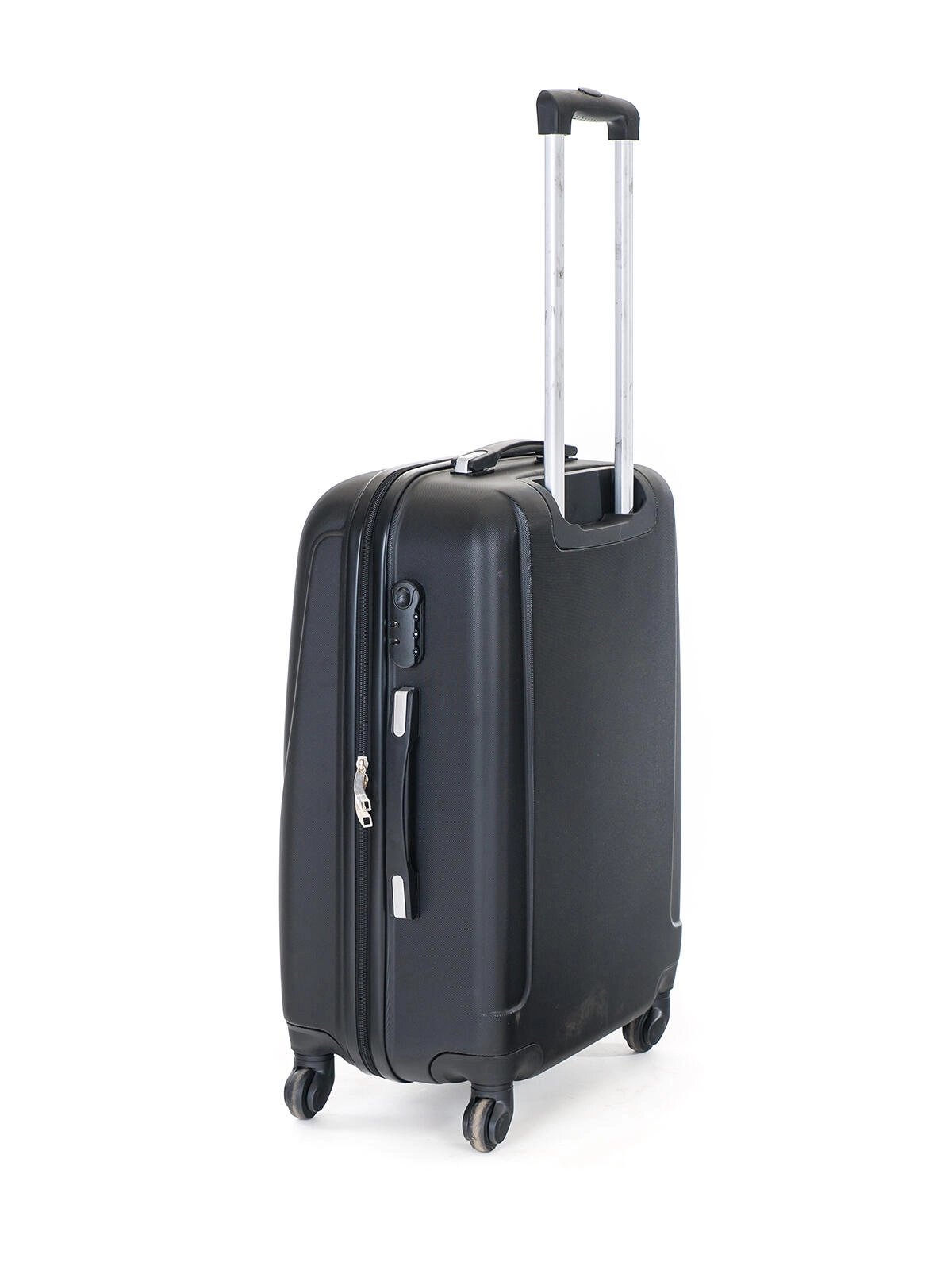 Élégante valise rigide noire en plastique ABS robuste offrant une protection fiable de vos effets contre les chocs et l’abrasion. Grâce aux quatre roulettes multidirectionnelles, la manipulation reste aisée même dans les espaces bondés des aéroports. La poignée télescopique avec verrouillage et réglage multi-positions garantit une prise en main confortable pour chaque voyageur.