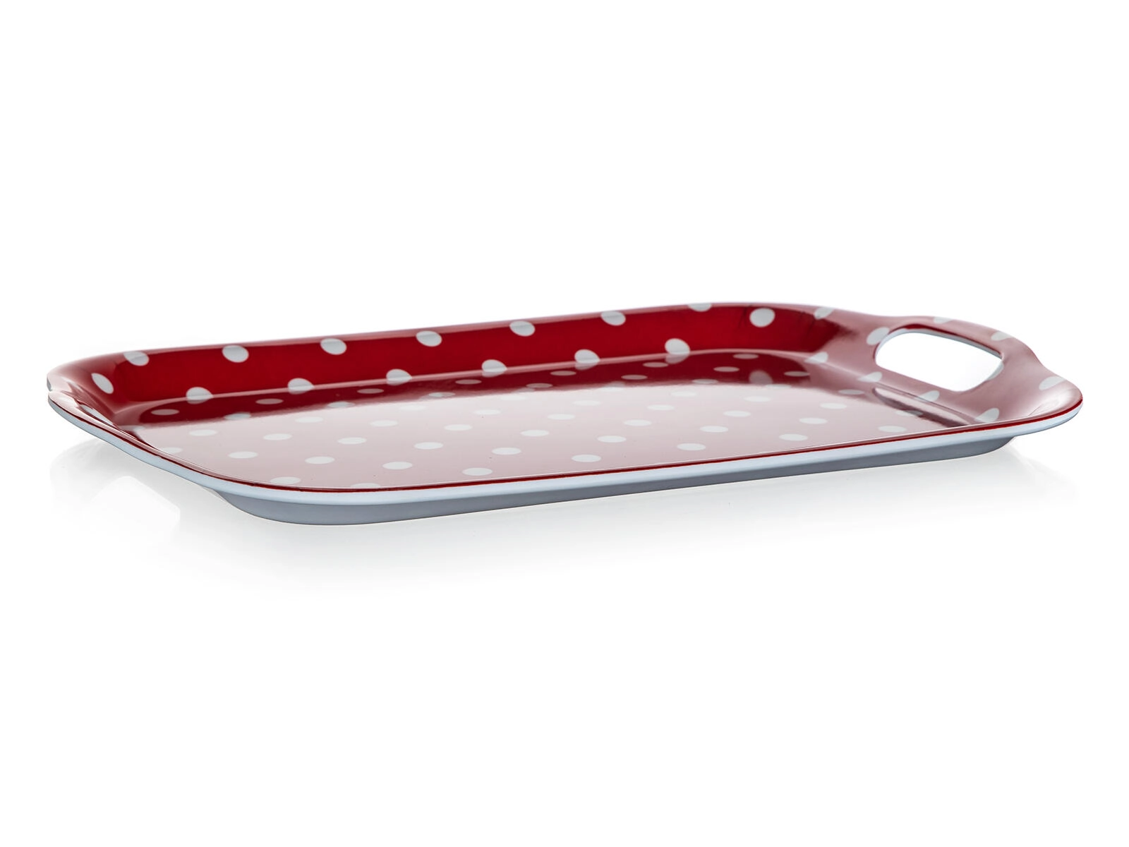 Plateau de service en mélamine à pois 36 × 25,5 cm, rouge