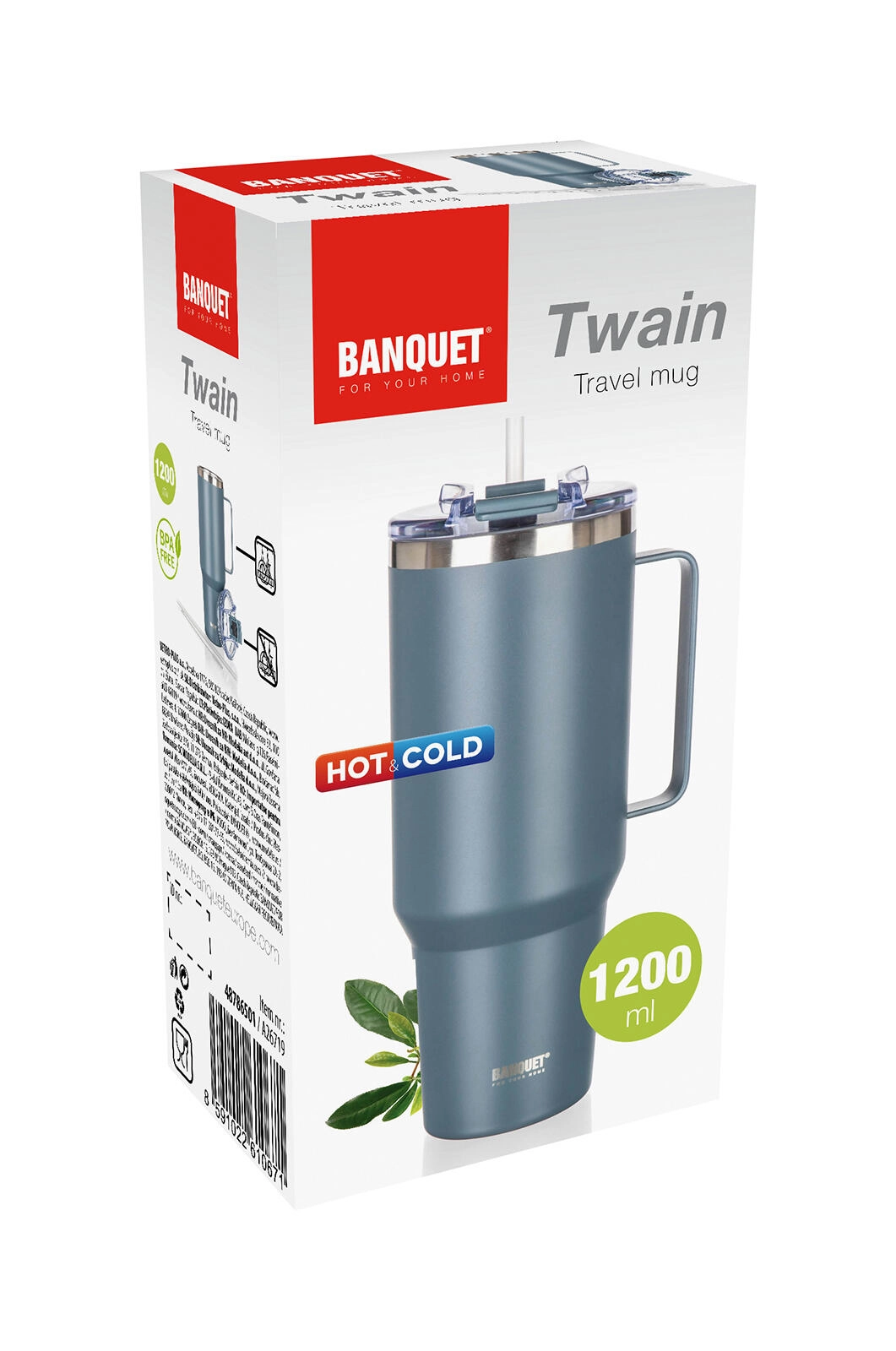 Pratique et à double paroi, le mug isotherme TWAIN 1200 ml garde vos boissons chaudes ou froides plus longtemps grâce à l’isolation sous vide. Il possède un corps en inox résistant, une anse confortable pour un transport facile et un couvercle avec fente pour boire/paille. L’emballage comprend une paille PP et une brosse de nettoyage.