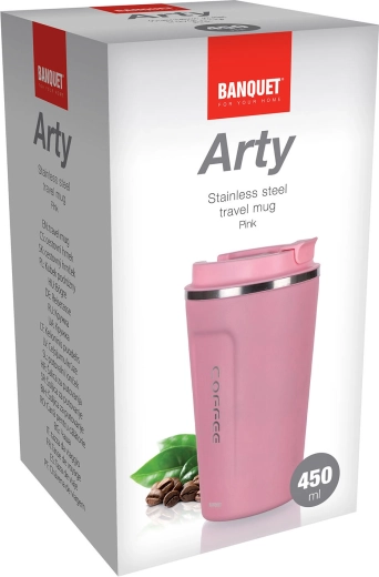 Profitez de votre boisson préférée en déplacement avec le mug isotherme ARTY 450 ml. La partie extérieure est en acier inoxydable 201 résistant, l’intérieur en acier inoxydable 304 pour un contact sûr avec les boissons. La construction à double paroi sous vide améliore l’isolation thermique et prolonge le maintien de la température. La finition rose apporte une touche de style à votre journée.