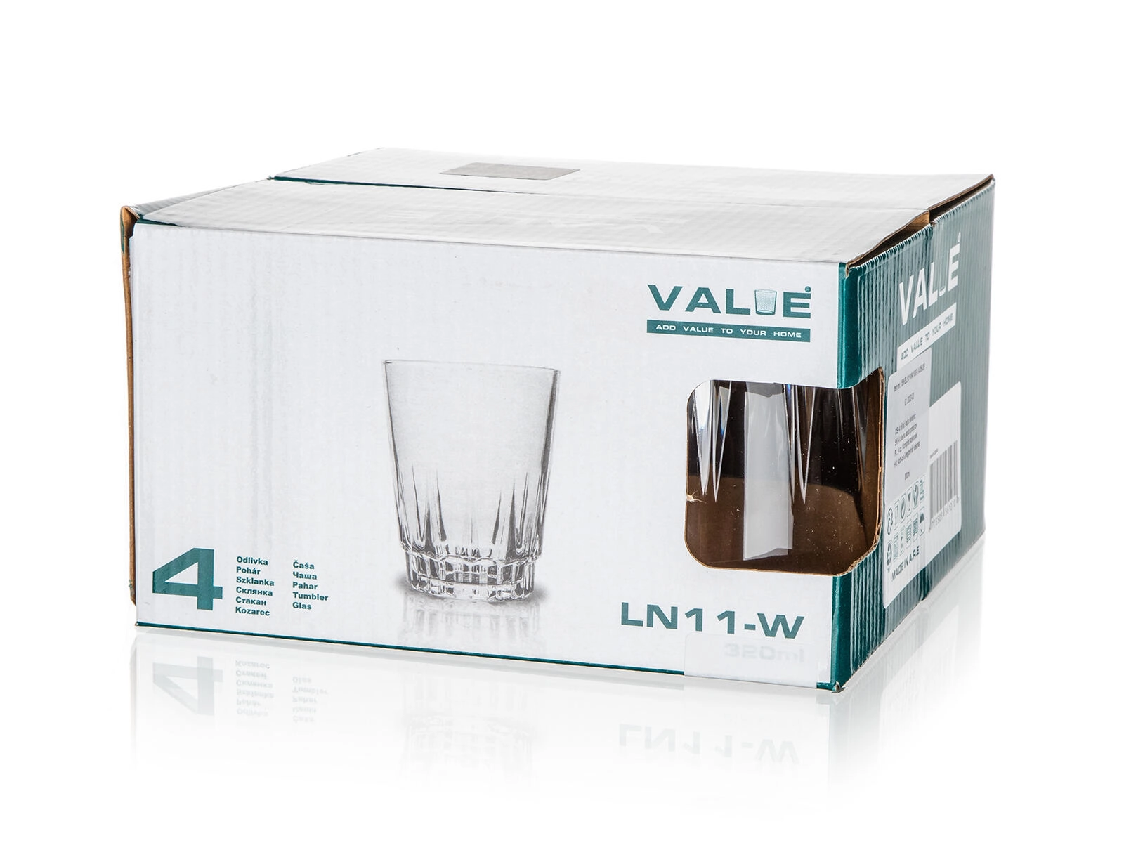 Élégant set de quatre verres VALUE d’une capacité de 300 ml pour un usage quotidien comme pour les moments festifs. Des verres avec un fond épais et résistant, un design facetté et une prise en main confortable, parfaits pour l’eau, le jus ou le whisky. Livrés dans un emballage cadeau décoratif.
