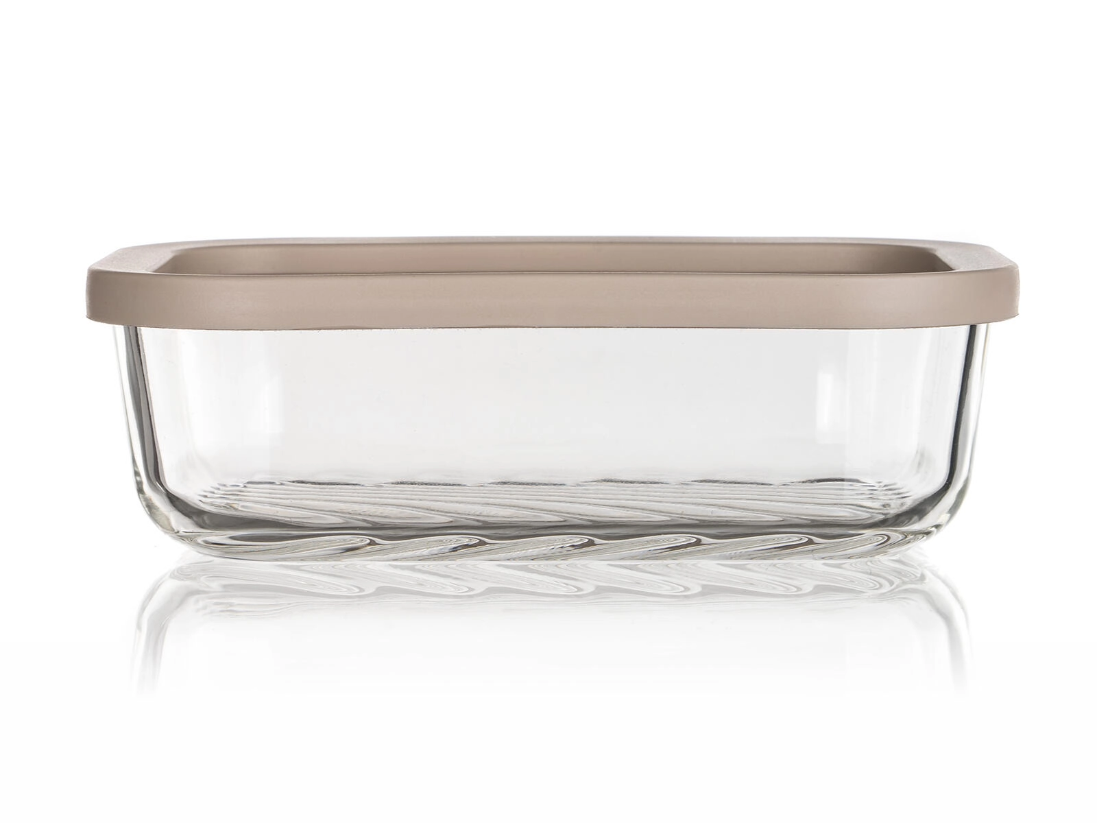 Bocal en verre WAVE 0,48 l avec couvercle latte, rectangulaire