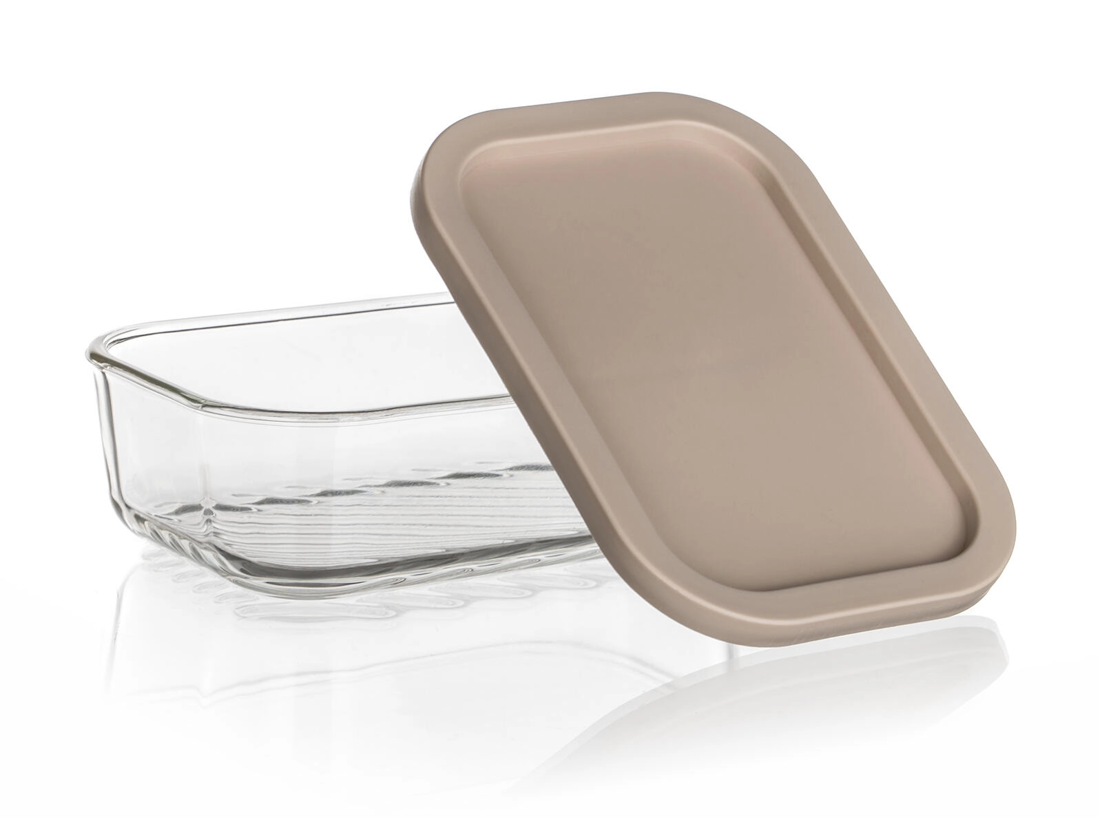 La partie en verre est résistante à la chaleur et adaptée au four ainsi qu’au four à micro-ondes (sans couvercle), ce qui en fait un excellent choix pour la cuisson, le réchauffage et le service. Ses dimensions compactes 16 × 11 × 5 cm facilitent le rangement au réfrigérateur et au congélateur, tout en économisant de la place dans les placards de cuisine.