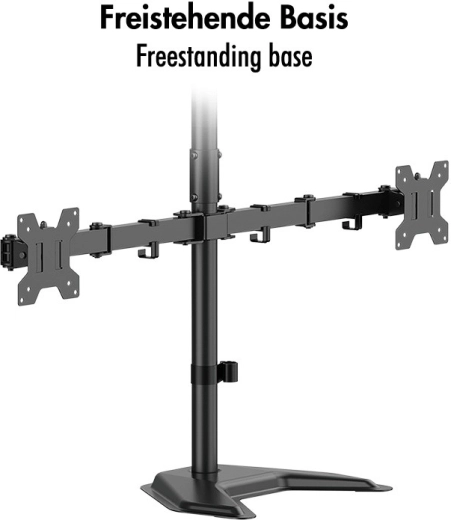 La base en V massive et le mât central haut assurent une grande rigidité sans perçage dans le bureau. Idéal pour le bureau comme pour l’installation domestique.
