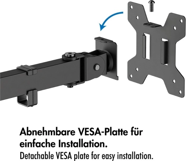 Le large bras avec supports VESA permet de placer trois écrans côte à côte et un quatrième au-dessus. Idéal pour le multitâche et un flux de travail clair.