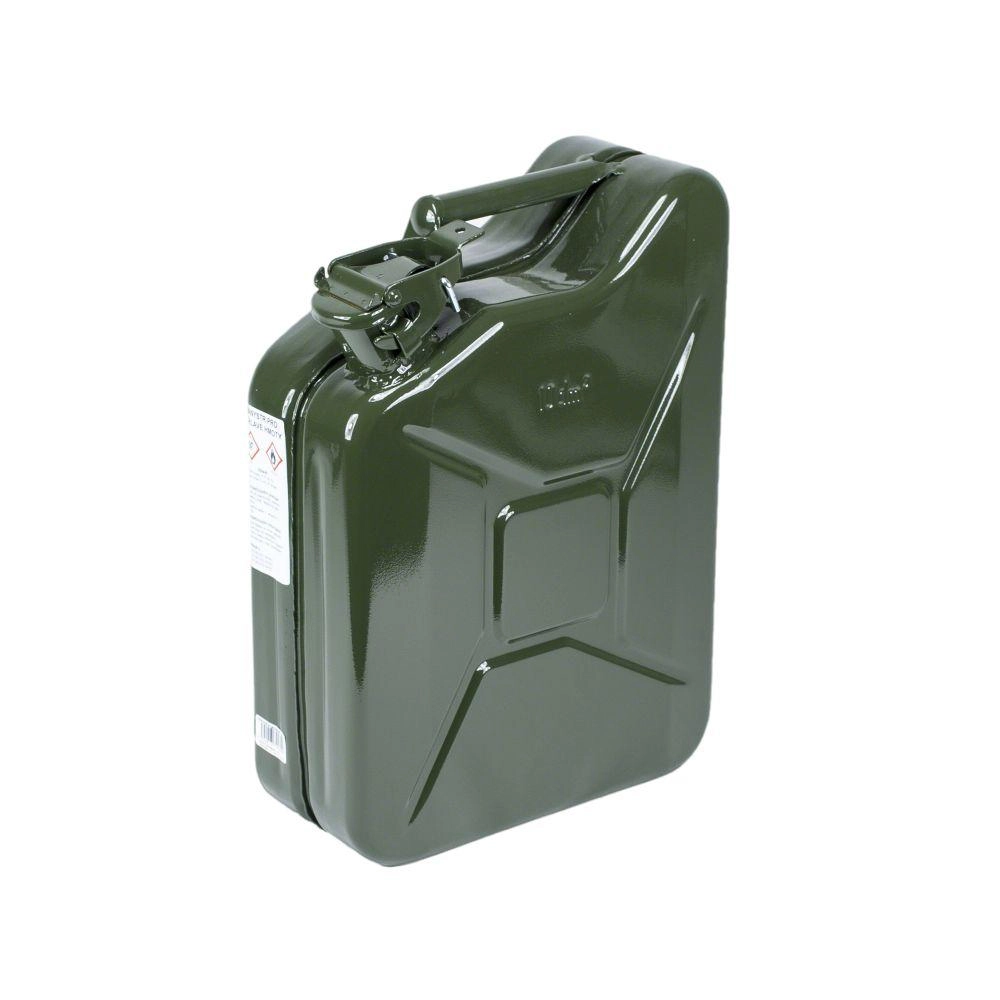 Jerrycan en tôle robuste d’une capacité de 10 l pour le stockage et le transport en toute sécurité de carburants, inflammables, peintures, vernis, colles, mastics et huiles. Dimensions compactes et structure solide garantissant une longue durée de vie et une manipulation aisée.