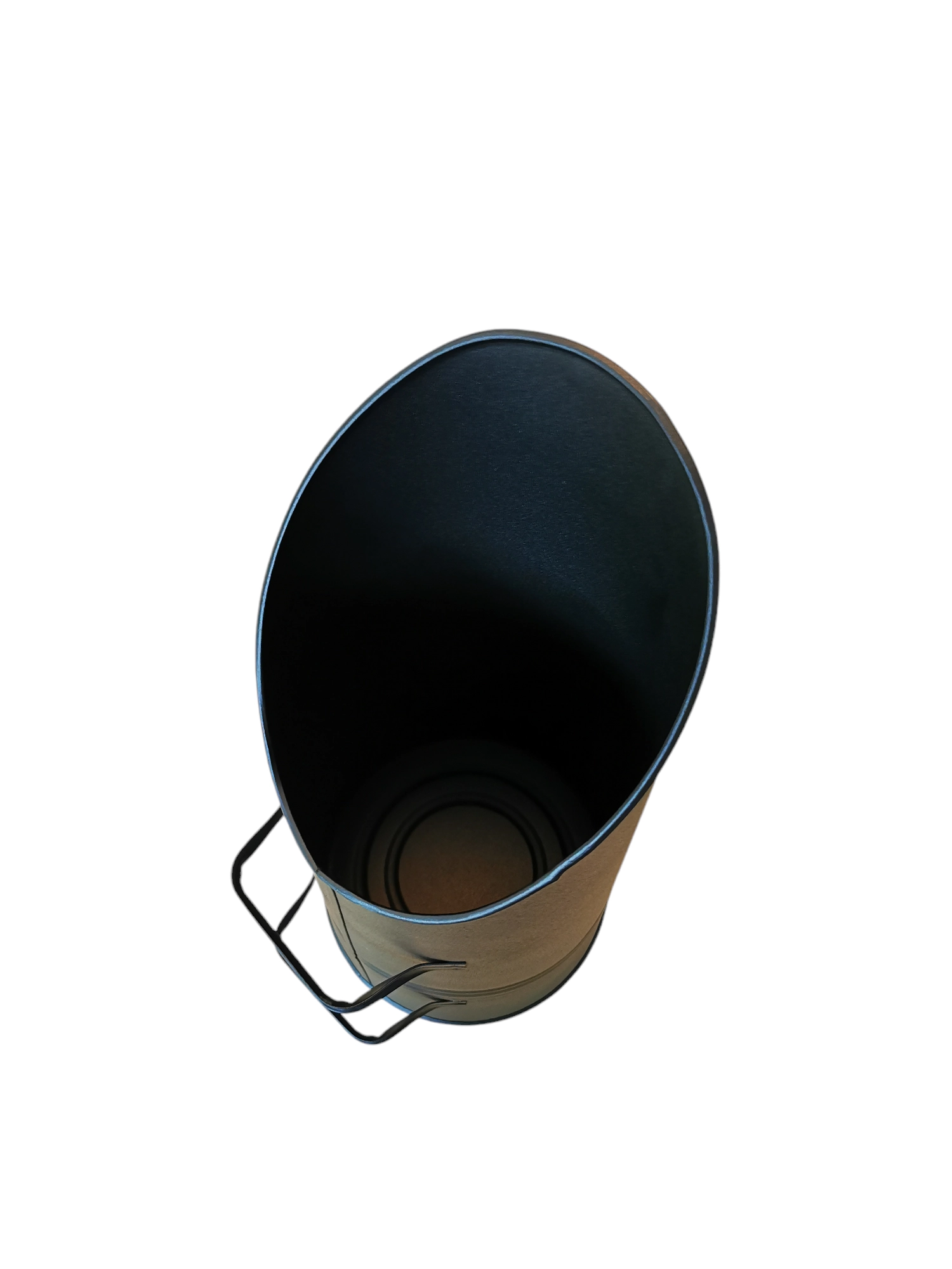 Ce grand seau à charbon métallique est conçu pour une manipulation aisée du charbon, des briquettes et des cendres. Grâce à l’ouverture inclinée, le contenu peut être versé en toute sécurité et avec précision directement dans le foyer. L’acier de 1,2 mm d’épaisseur assure une longue durée de vie, même en cas d’utilisation quotidienne.