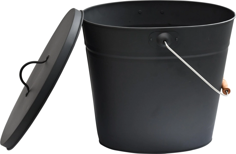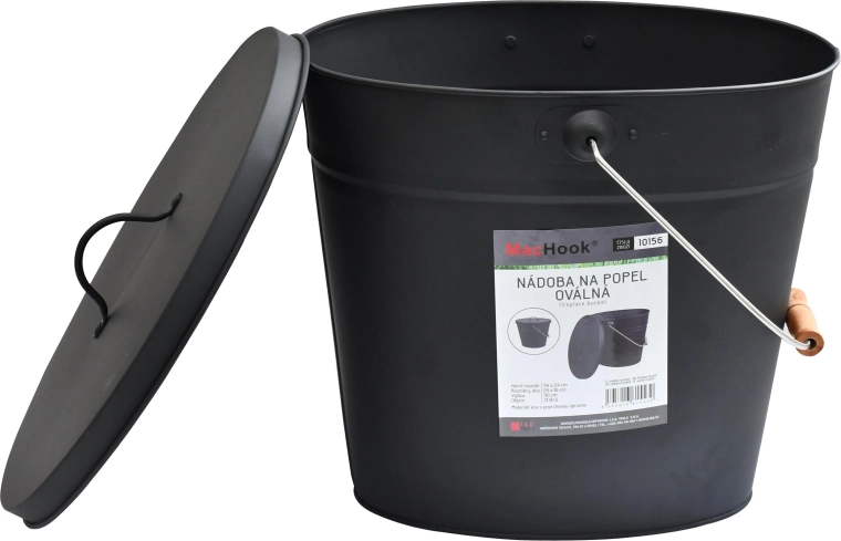 Récipient à cendres en métal pratique d’un volume de 13 litres, à forme ovale et dimensions stables, pour un stockage sûr des cendres de cheminées et de poêles. Il offre un fond stable, un couvercle bien ajusté et une épaisseur de matériau de 0,32 mm pour une longue durée de vie.