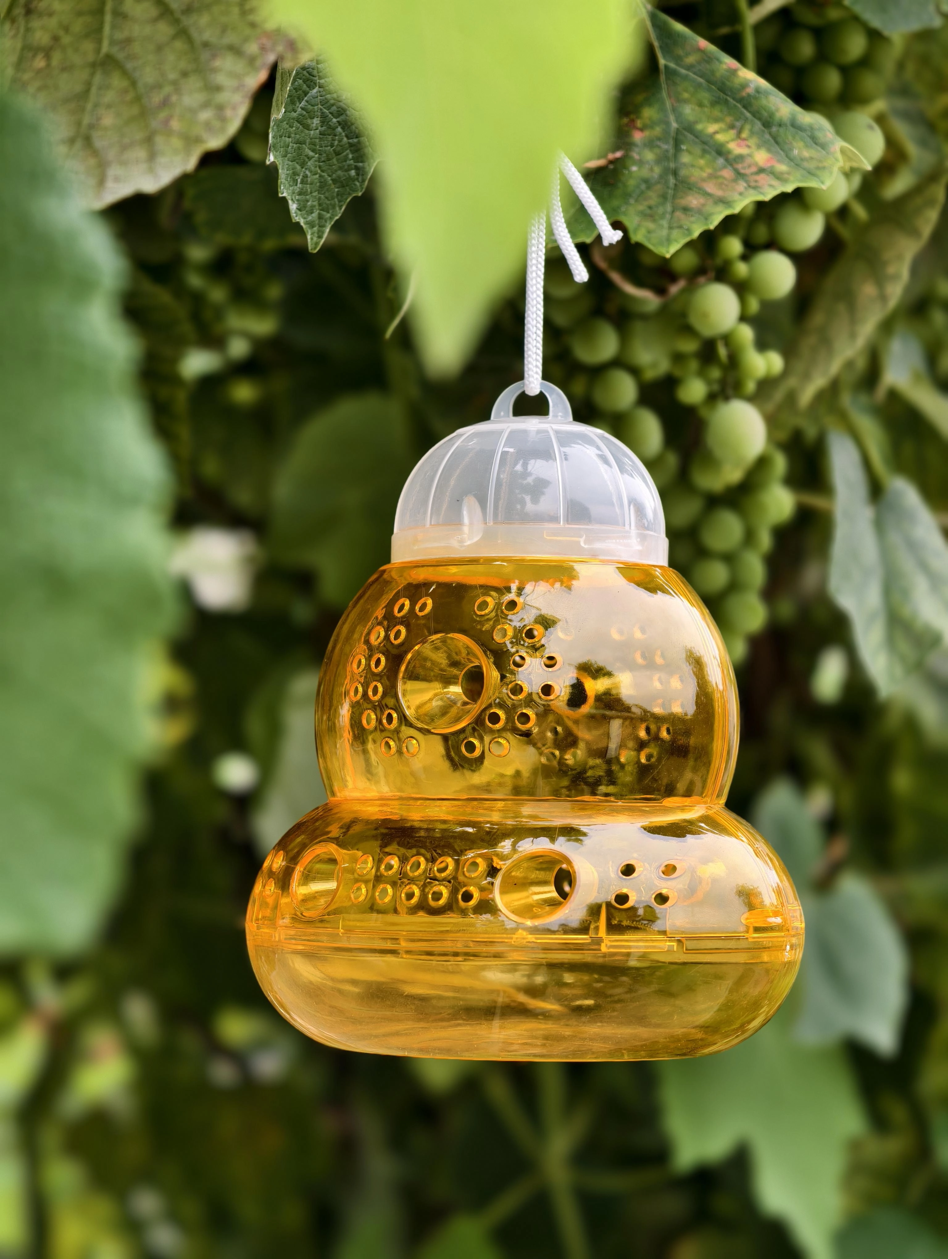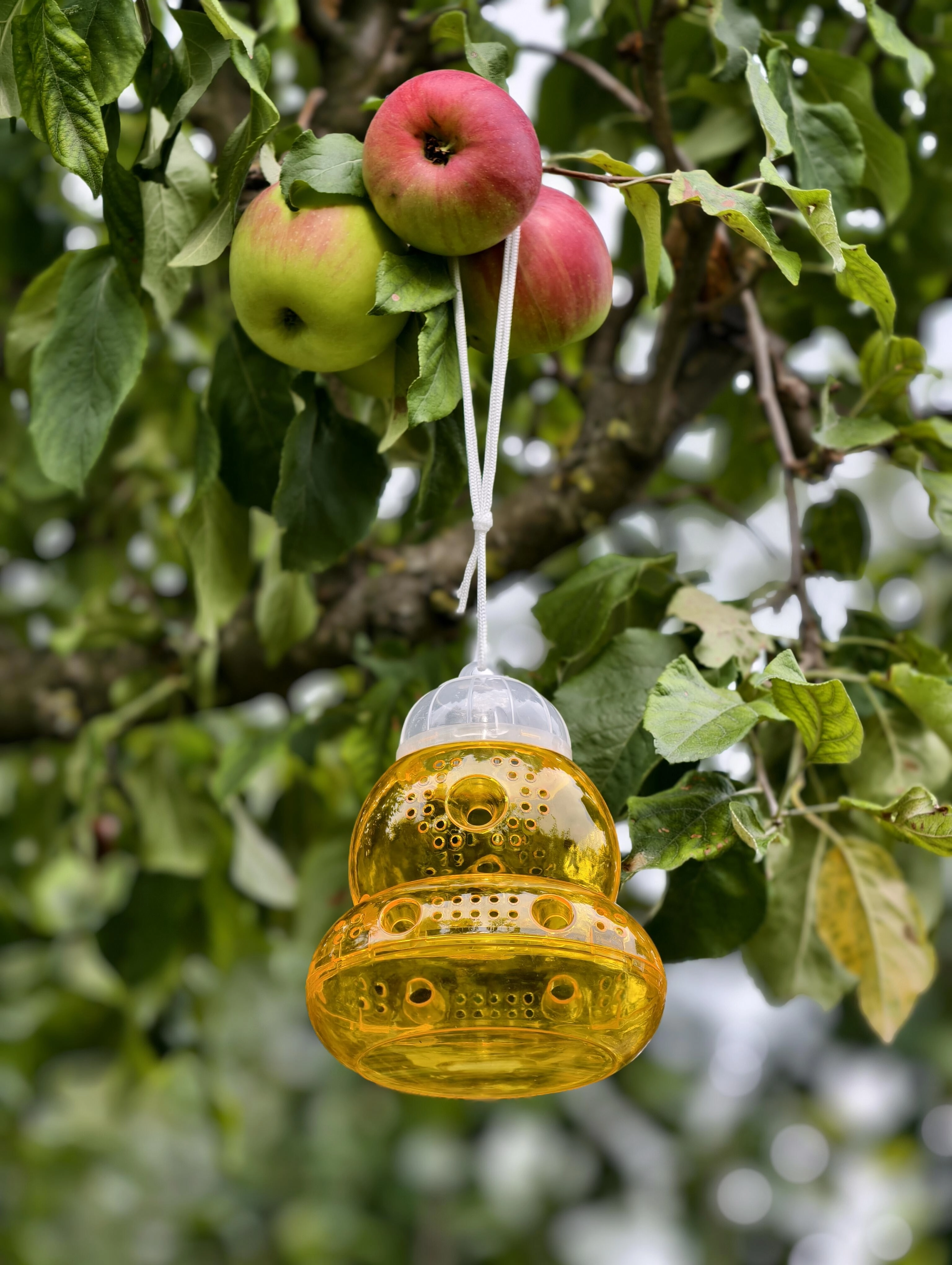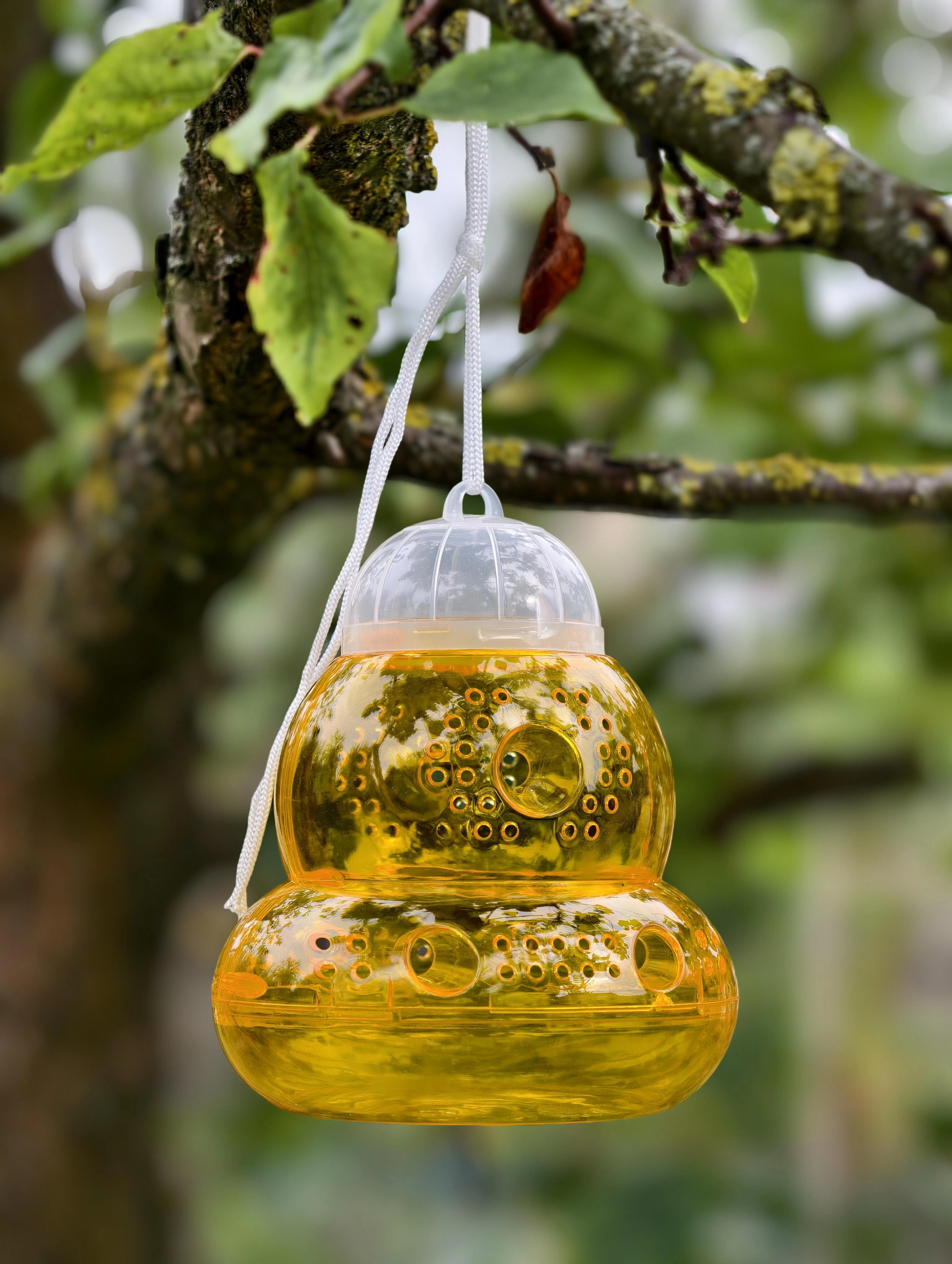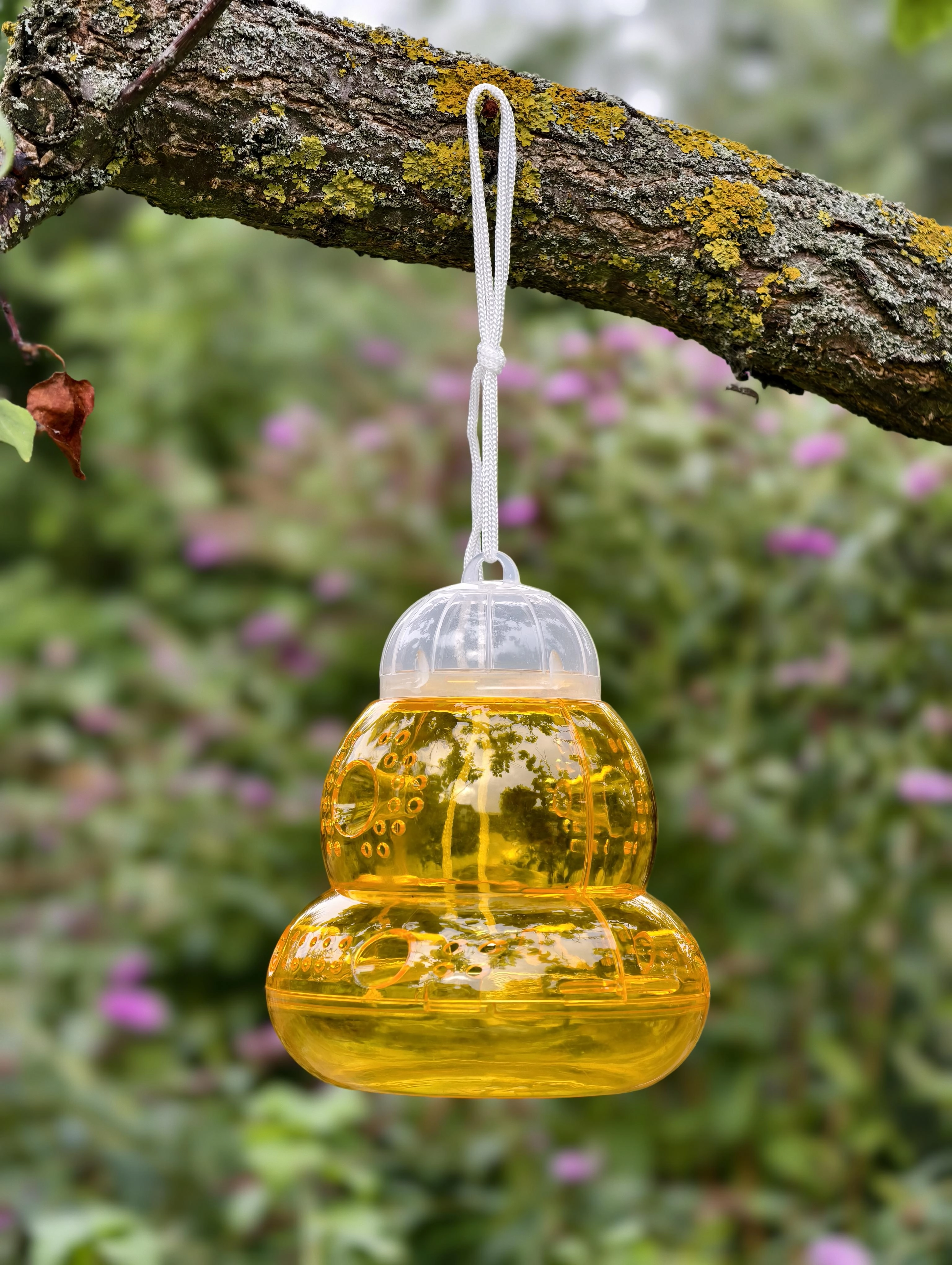 Préservez la tranquillité sur la terrasse et au jardin. Ce piège suspendu attire et capture en toute sécurité les guêpes, mouches des fruits et autres insectes volants, aidant ainsi à protéger les récoltes et les repas en extérieur. Il suffit de verser un appât sucré, de l’accrocher à une branche ou à une pergola et de le laisser agir.