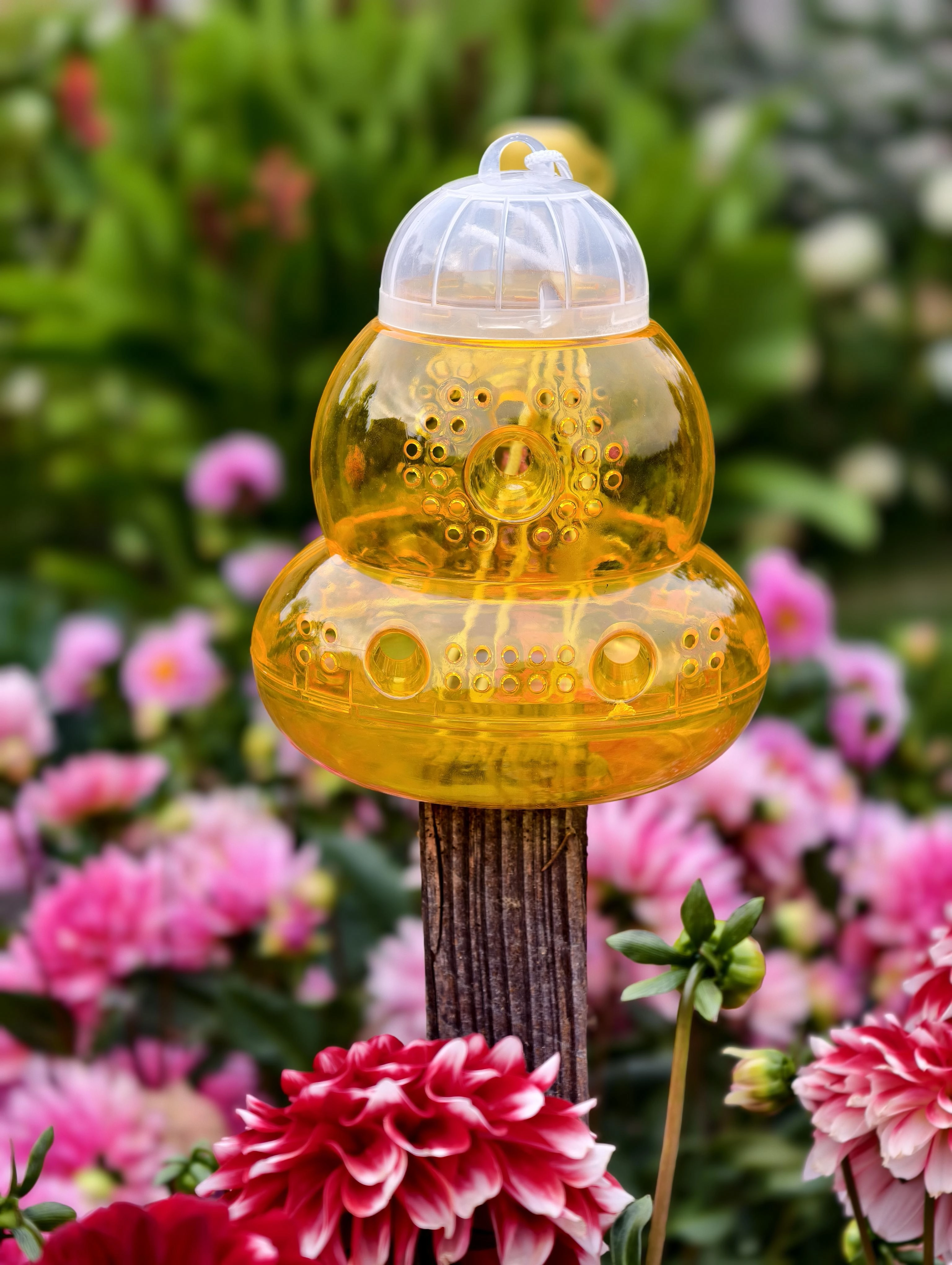 Pratique piège suspendu pour guêpes et insectes volants protégeant votre jardin, vos arbres fruitiers et vos espaces de détente. Grâce à ses ouvertures d’entrée efficaces et à la possibilité d’ajouter un appât, il attire et emprisonne efficacement les nuisibles. Sa structure résistante en PP + PS, sa suspension facile et son réemploi font de ce piège un allié fiable contre les guêpes et les mouches des fruits.