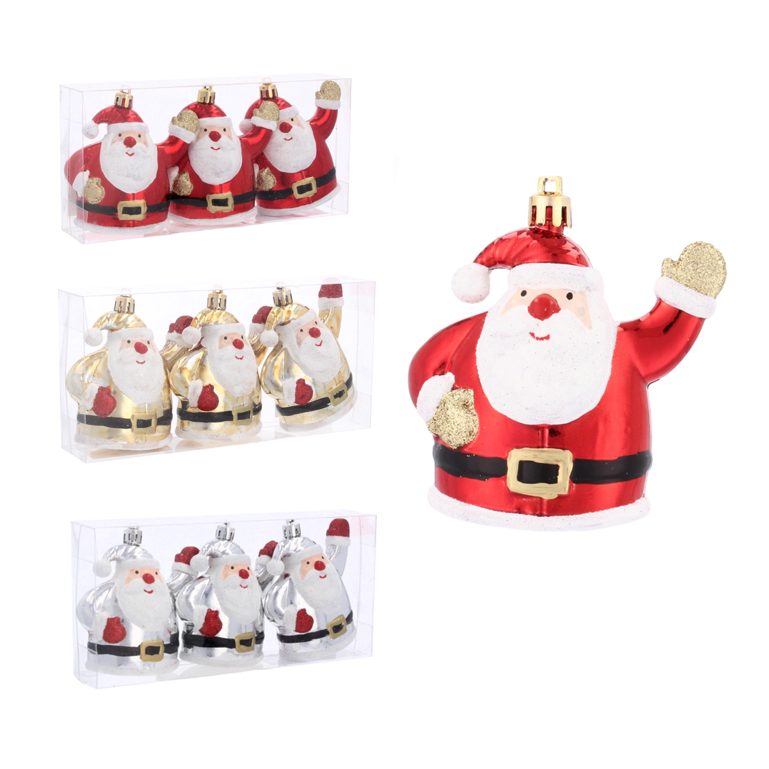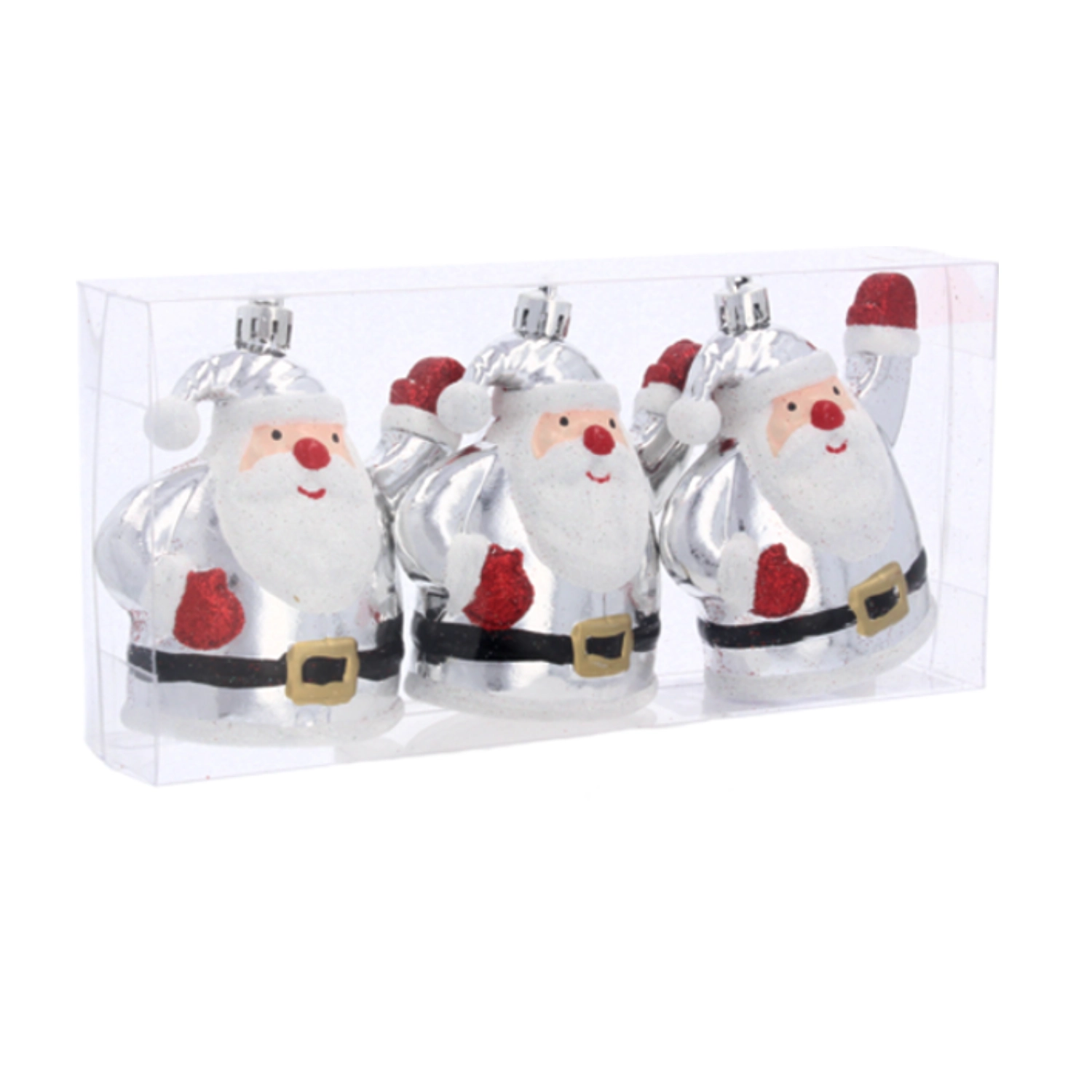 Décorations de Noël Santa Claus, lot de 3 pièces, argentées