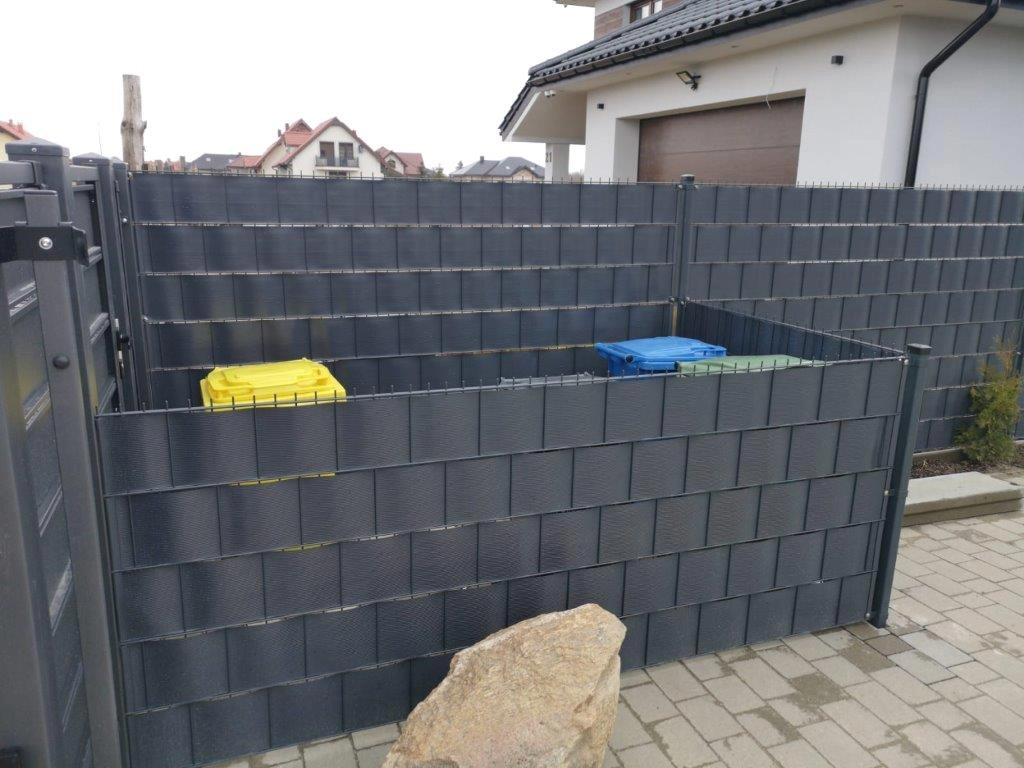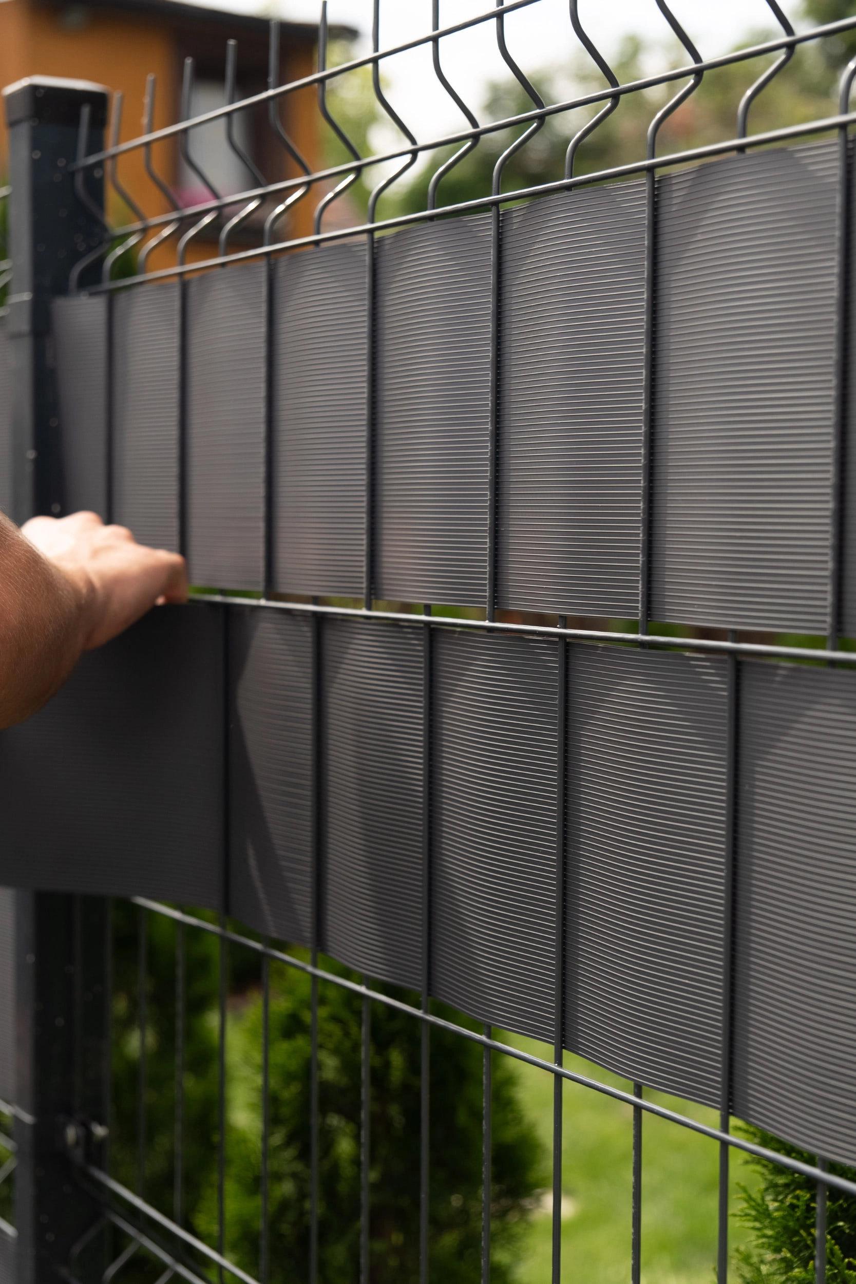 Fini les pertes de temps et de matériau – un colis = un panneau de clôture jusqu’à 2,55 m de largeur. Il suffit de faire passer les bandes entre les fils du panneau et c’est tout. La brise-vue convient aux panneaux de clôture 2D/3D, aux garde-corps de balcon et aux remplissages de clôture, et grâce à son aspect graphite mat elle apporte un style moderne à votre clôture.