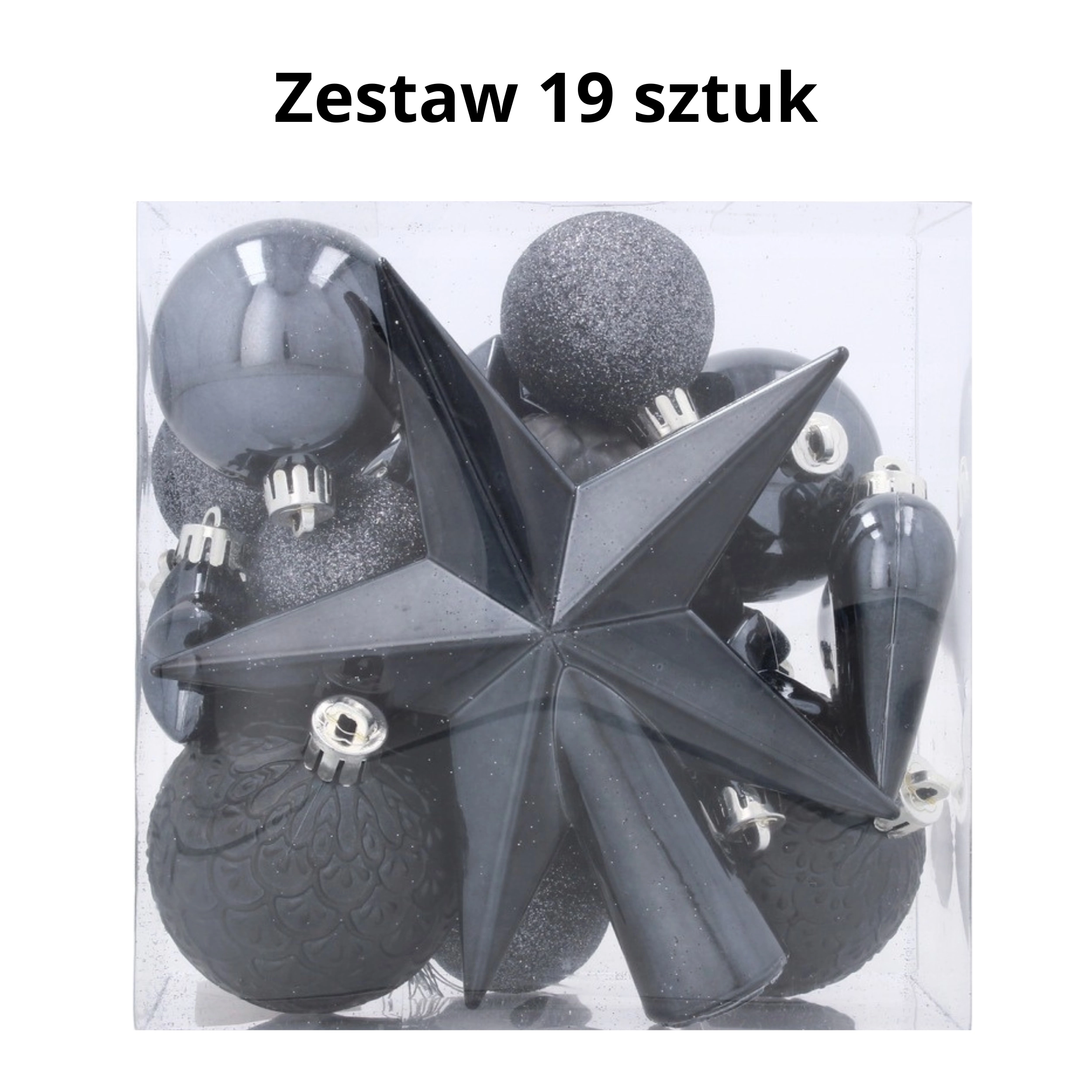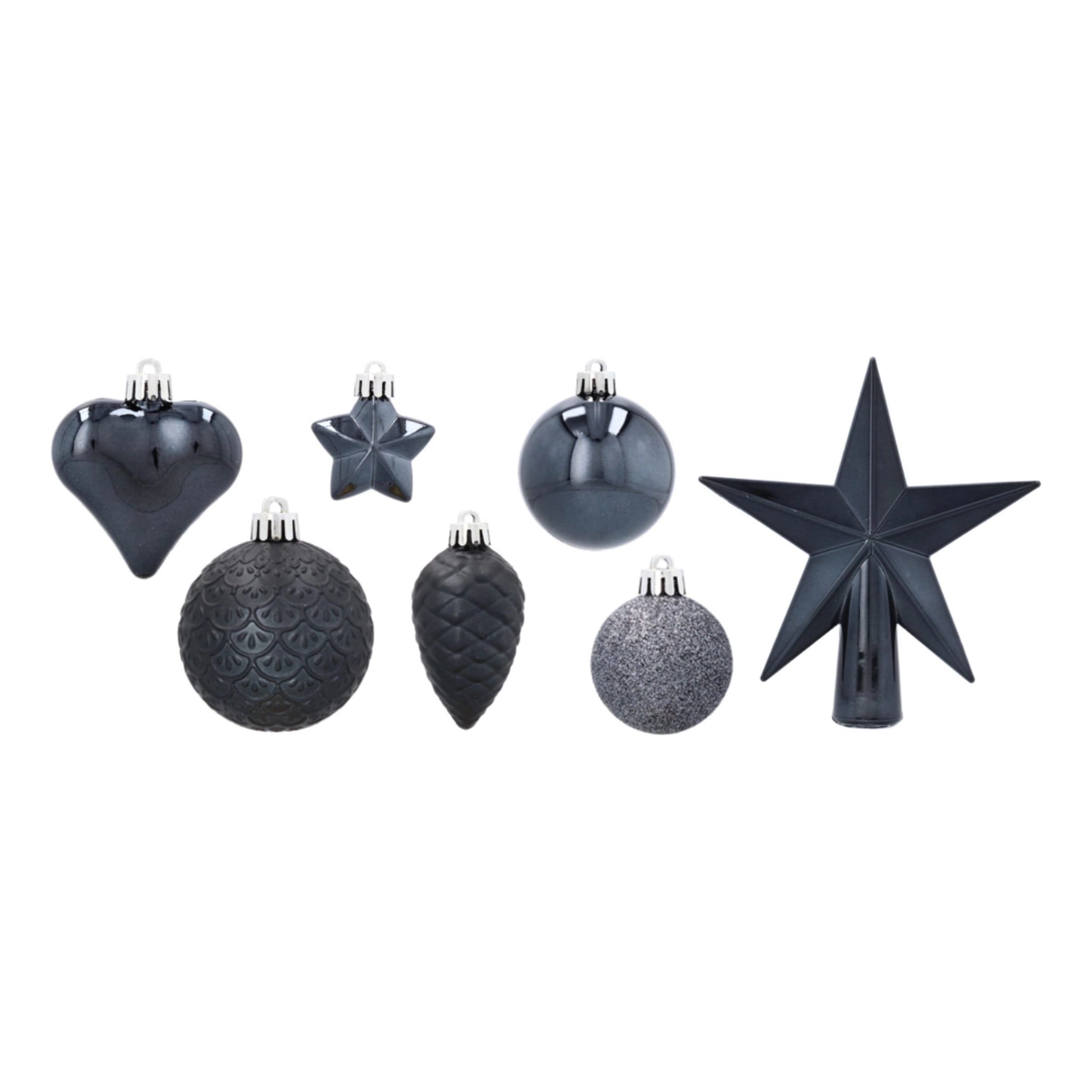 Set de 19 décorations de Noël anthracite avec étoile de sommet KAMAI Christmas Decoration