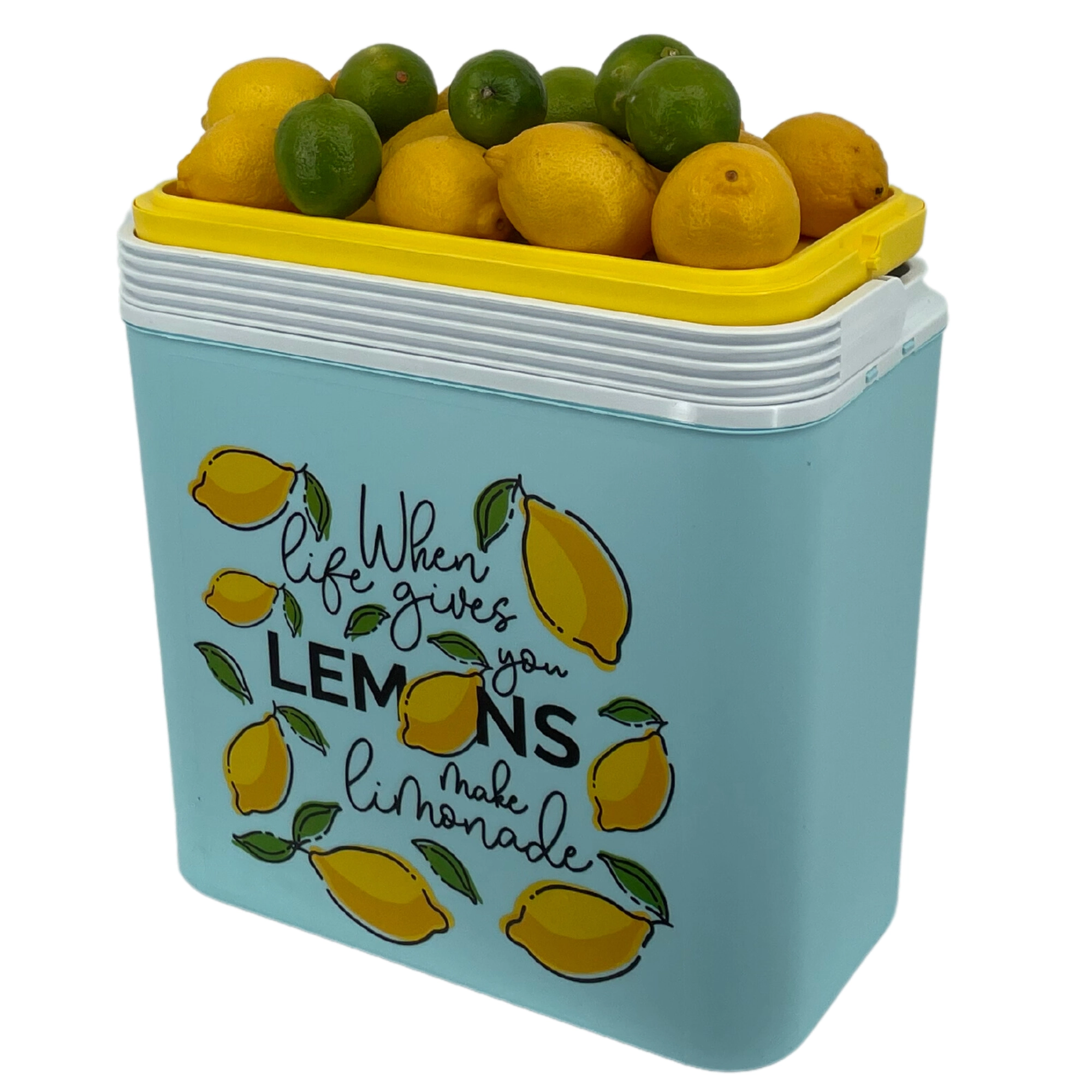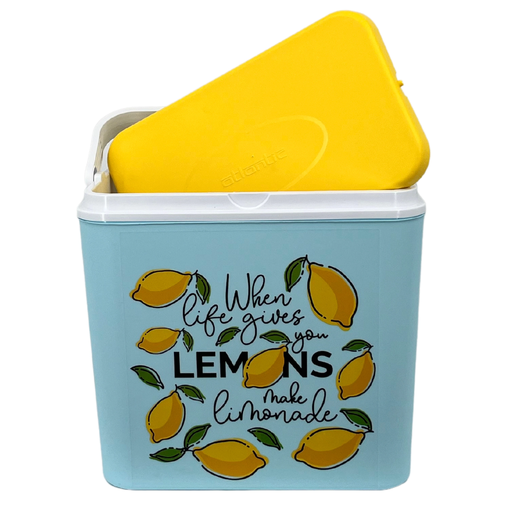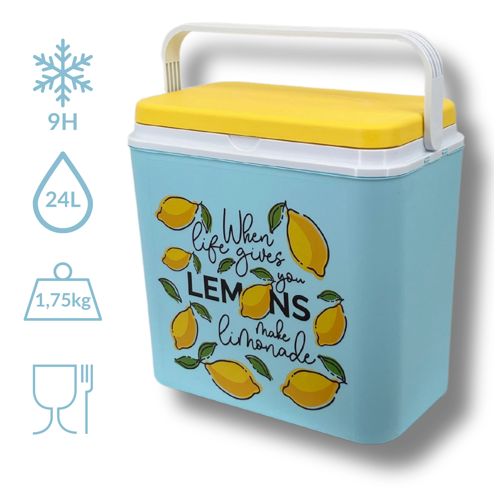Un motif frais de citrons en combinaison bleu–jaune apporte du peps à vos sorties et rend la glacière facilement reconnaissable.