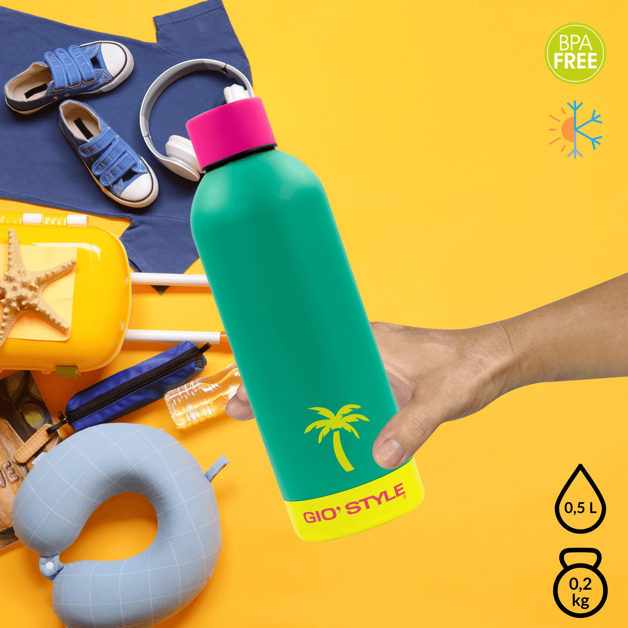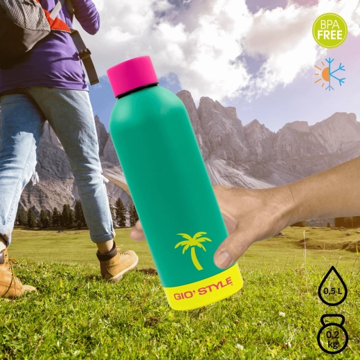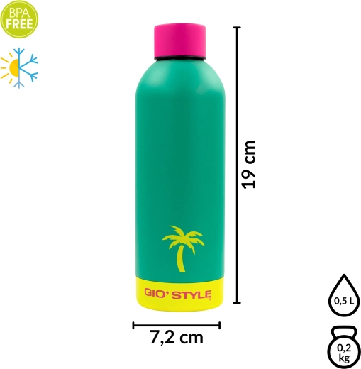 Une thermos GIO’ STYLE Kamai élégante et pratique en acier inoxydable d’un volume de 0,5 l garde vos boissons chaudes ou froides jusqu’à 8 heures. Grâce à son isolation sous vide, à des matériaux sans BPA et à une conception résistante, elle est idéale pour le travail, l’école, le sport et les voyages.