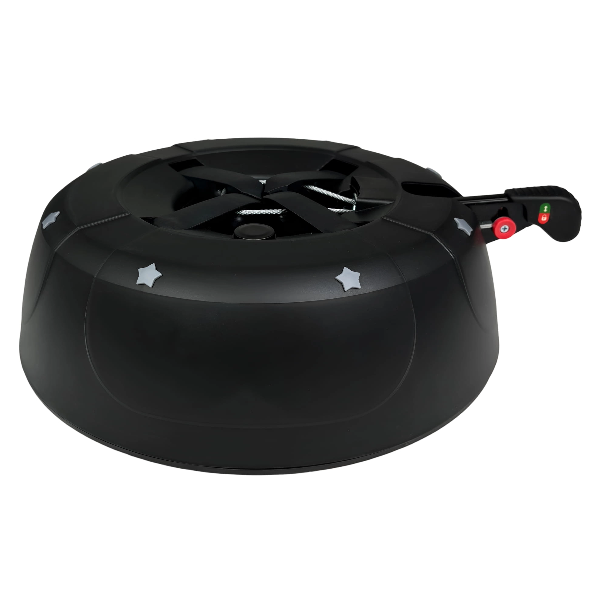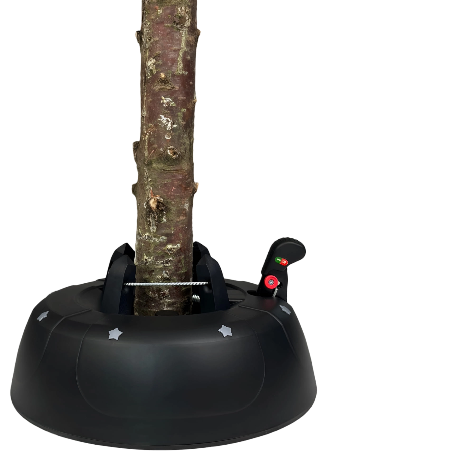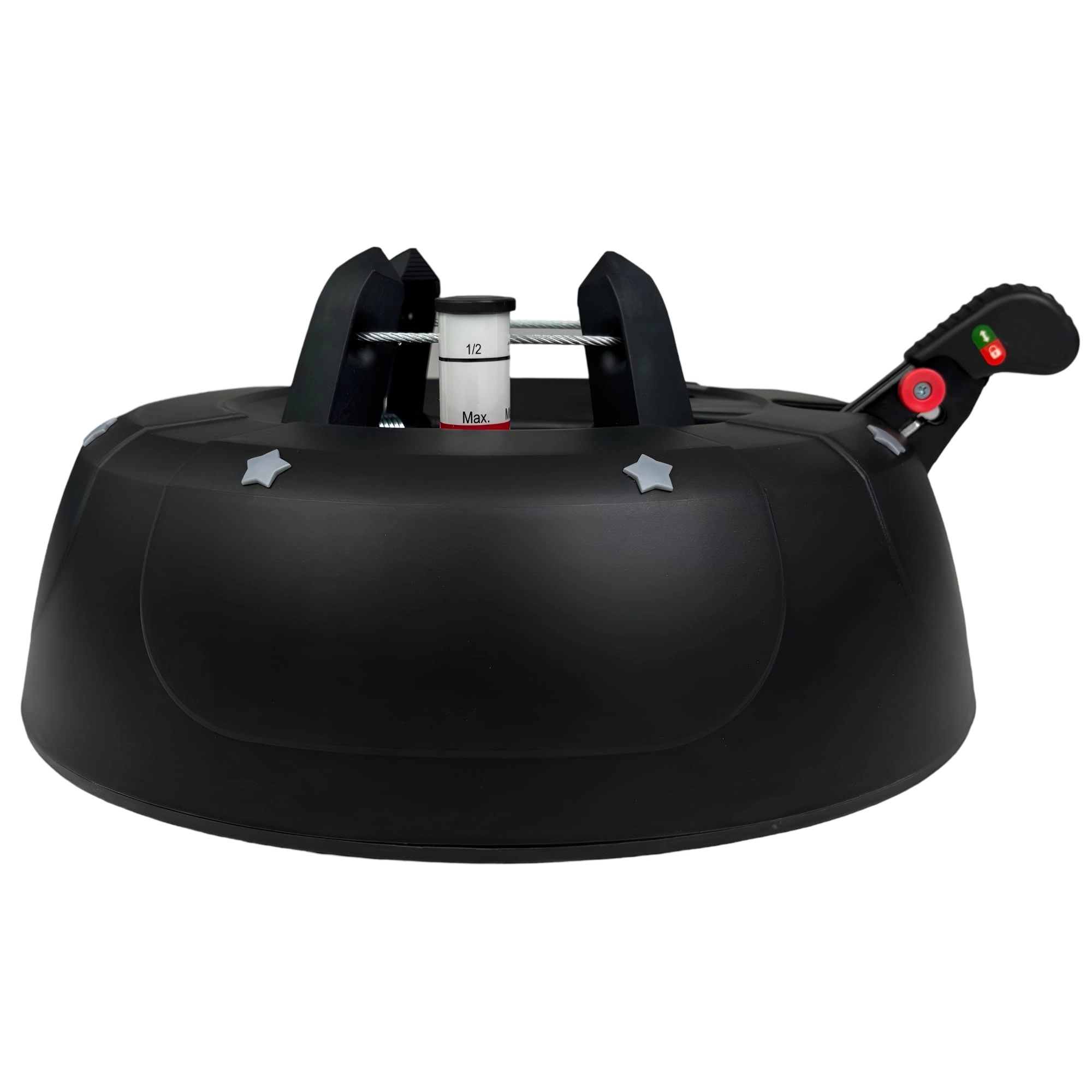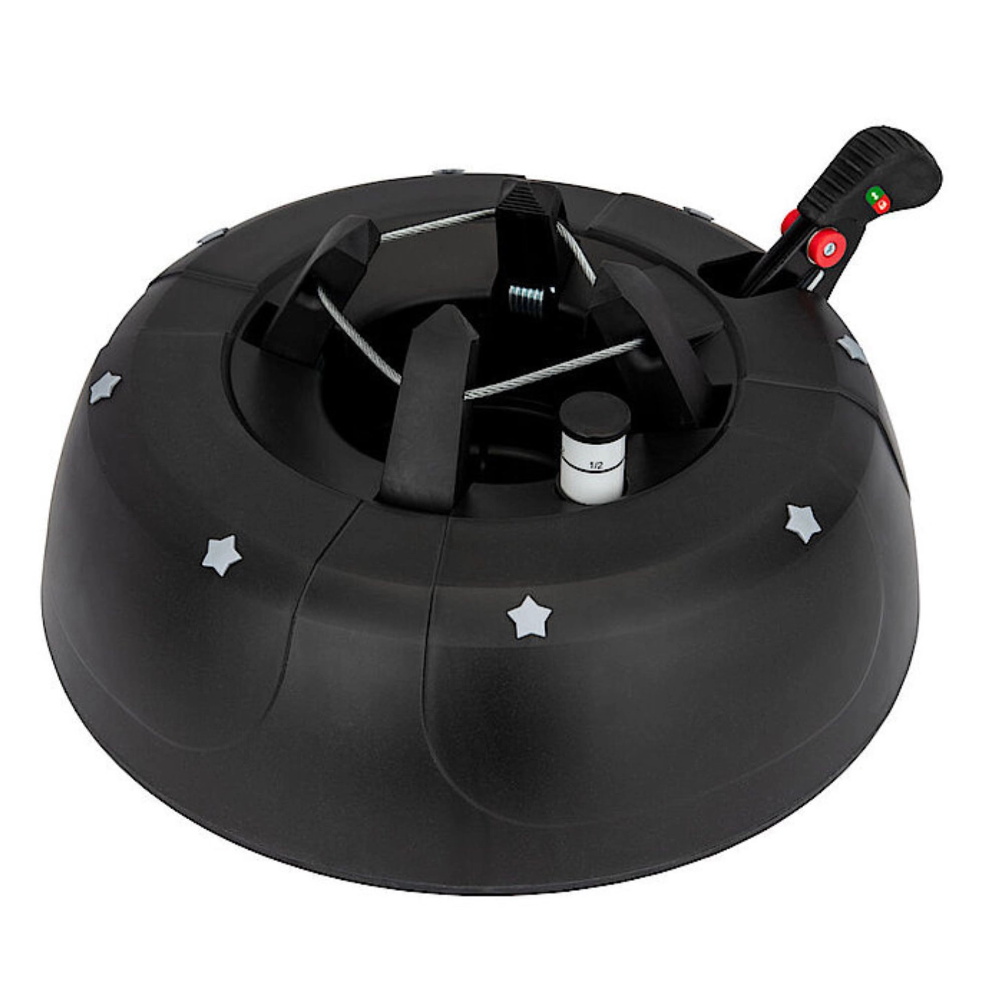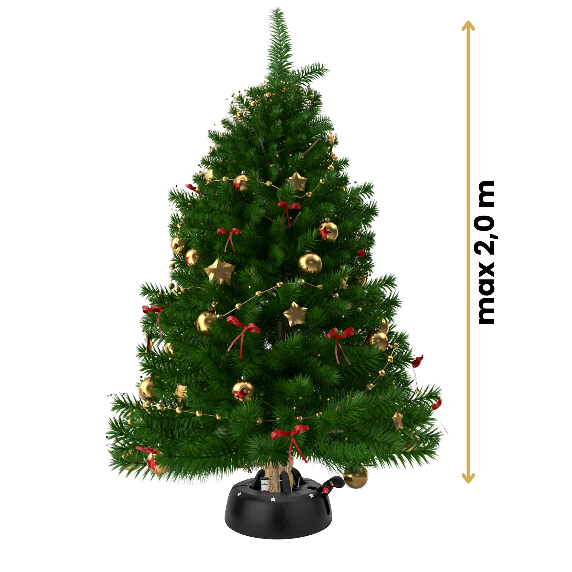 La base large et lourde (4,2 kg, diamètre 34 cm) assure une fixation sûre pour des arbres jusqu’à 2 m et une utilisation confortable pendant les fêtes.