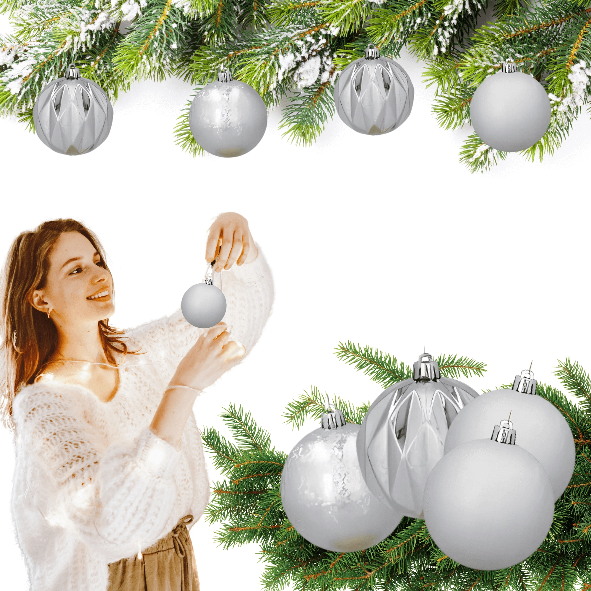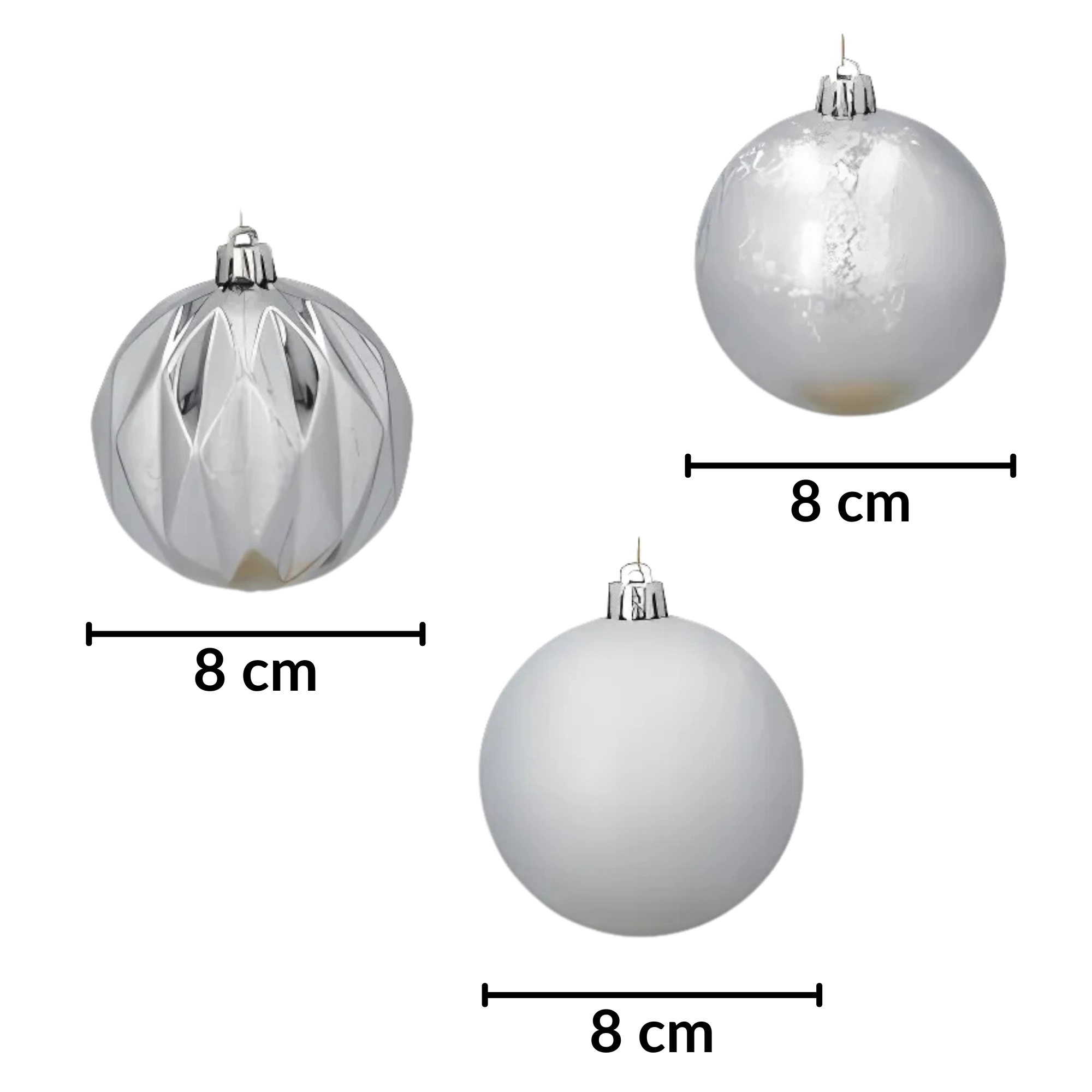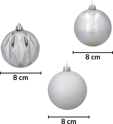 Ces boules de Noël argentées sont conçues pour se démarquer magnifiquement sur le sapin. Grâce à la combinaison de surfaces mates, brillantes et texturées, elles apportent une diversité visuelle et un éclat métallique discret. Elles conviennent non seulement au sapin, mais aussi aux photophores, aux couronnes ou comme décoration de table élégante.