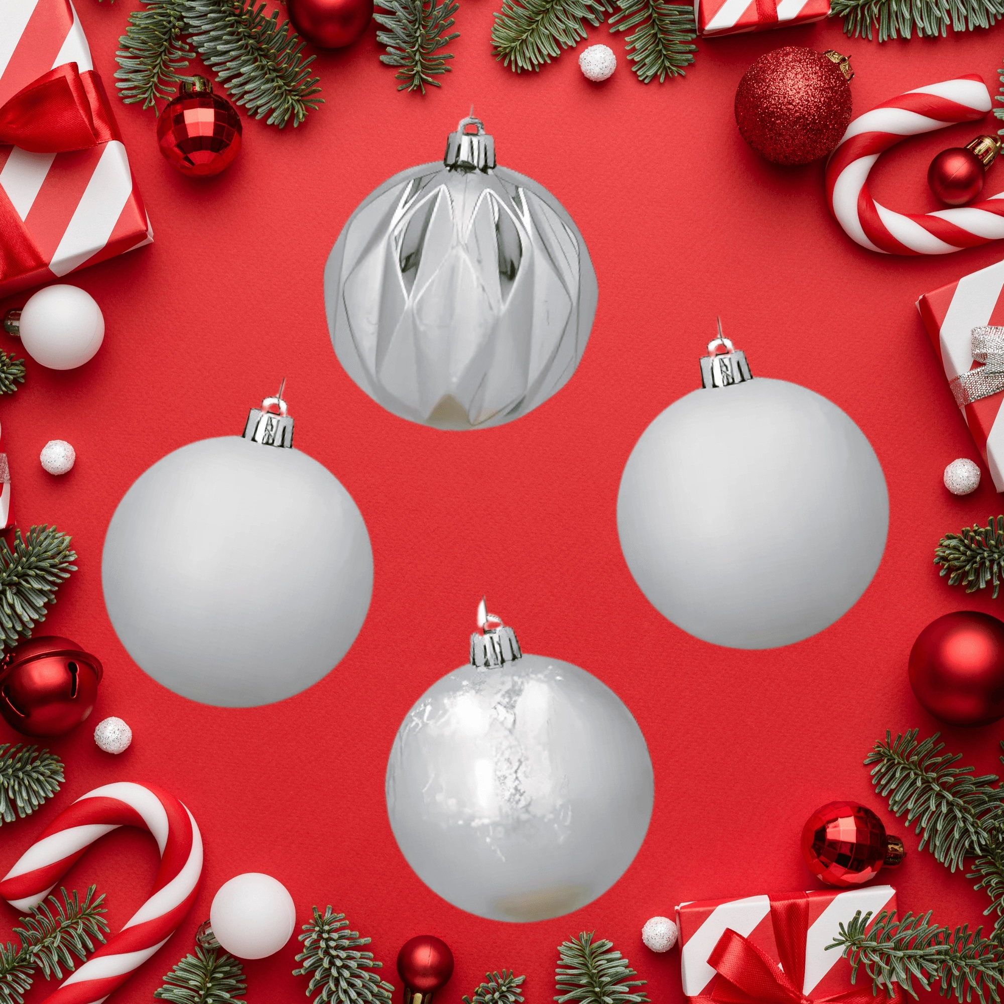 Set de 4 décorations de Noël argentées 8 cm