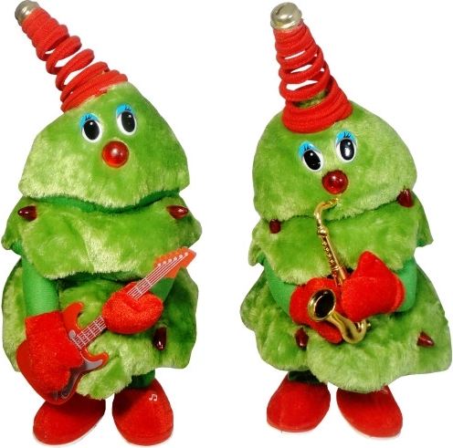 Adorable sapin en peluche qui, d’une simple pression, commence à danser, diffuse 10 chants de Noël en anglais et répète vos mots. Disponible avec guitare ou saxophone (la variante est attribuée aléatoirement). Fonctionne avec des piles AA et constitue un excellent choix pour animer l’ambiance des fêtes à la maison ou comme cadeau.