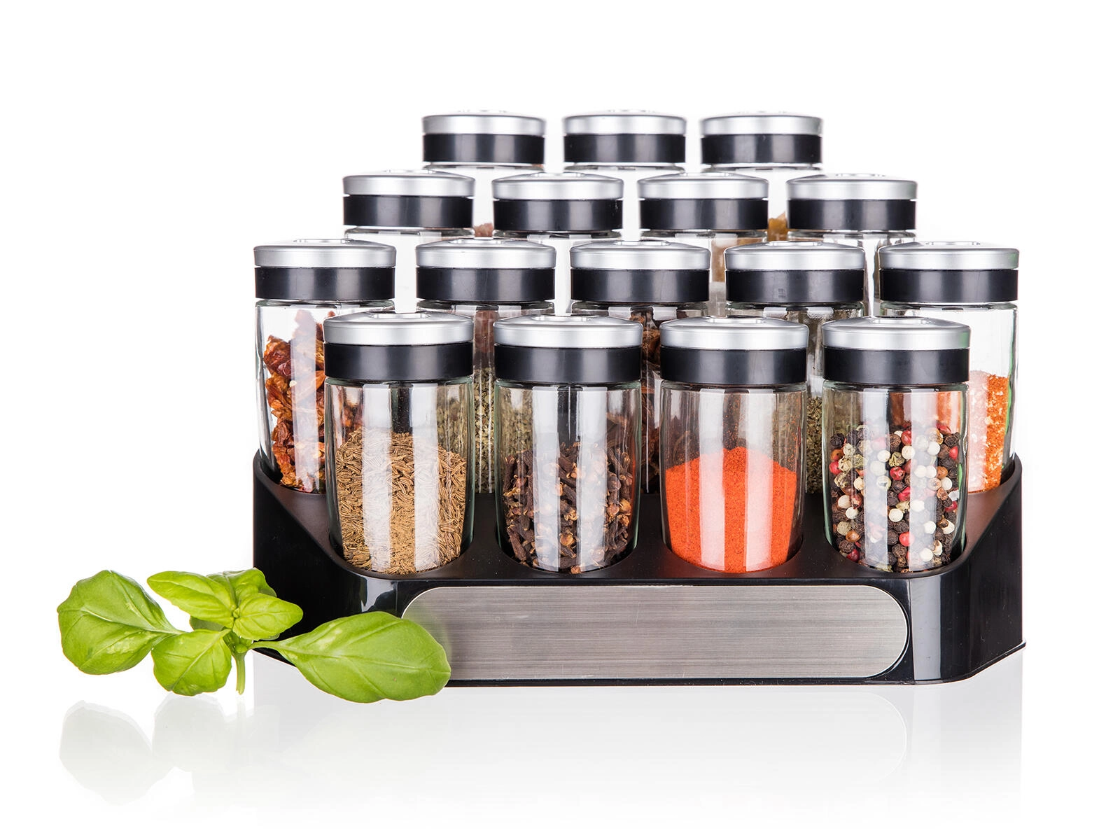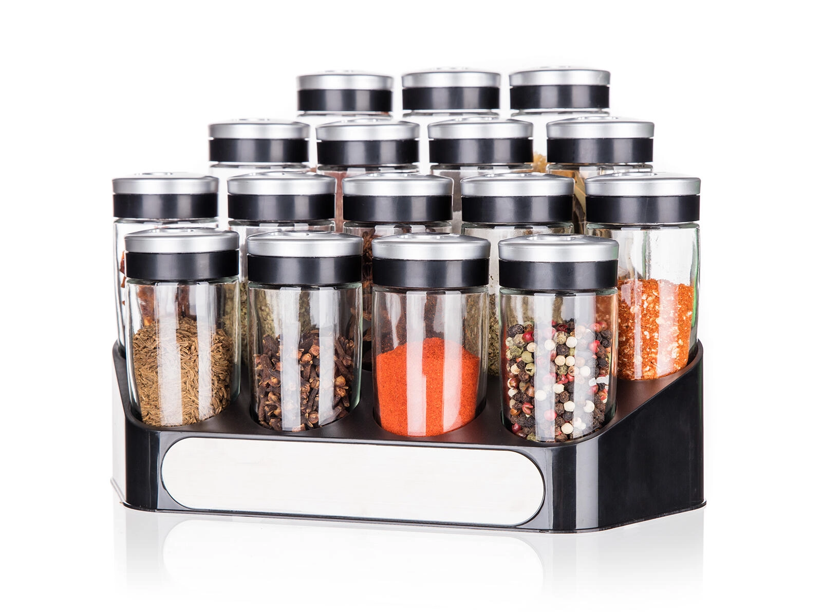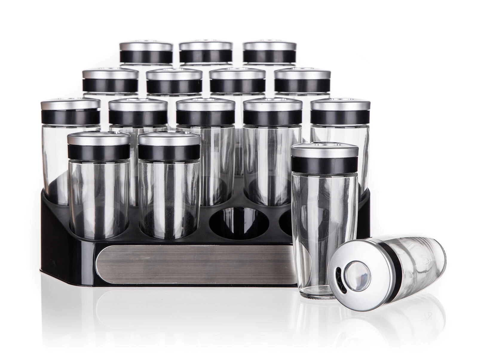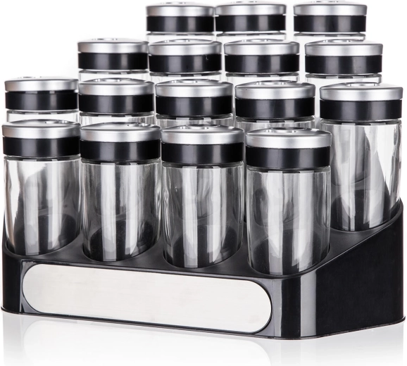 ensemble d’épices ALTIMA avec support, 16 pcs, bocaux en verre 95 ml avec couvercles à 3 ouvertures